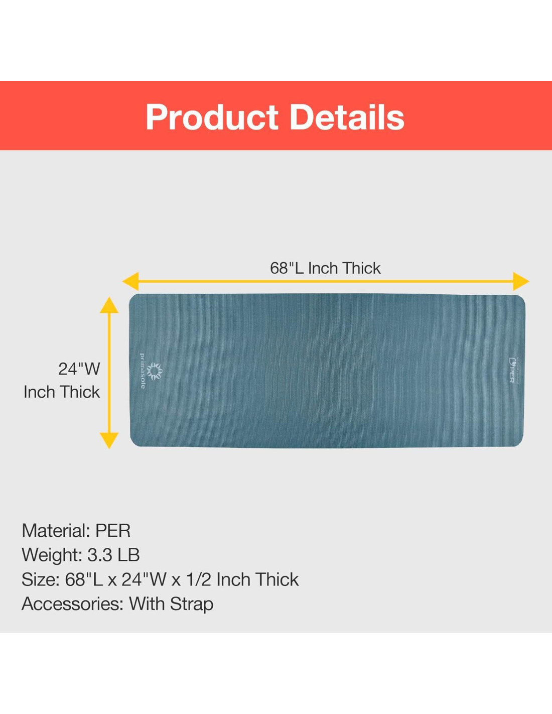 - [TAMAÑO Y LIGERO] El tamaño de la esterilla es 68 x 24 pulgadas (172.72 x 60.96 cm). El peso total es 3.3 libras (1.5 kg). extra (10 mm) de grosor proporciona comodidad y estabilidad. Perfecta esterilla de yoga y ejercicio para suelos duros o alfombras en casa y gimnasio. Es más adecuada para personas con articulaciones sensibles o lesionadas. Puede proteger tu rodilla, especialmente excelente para personas mayores.