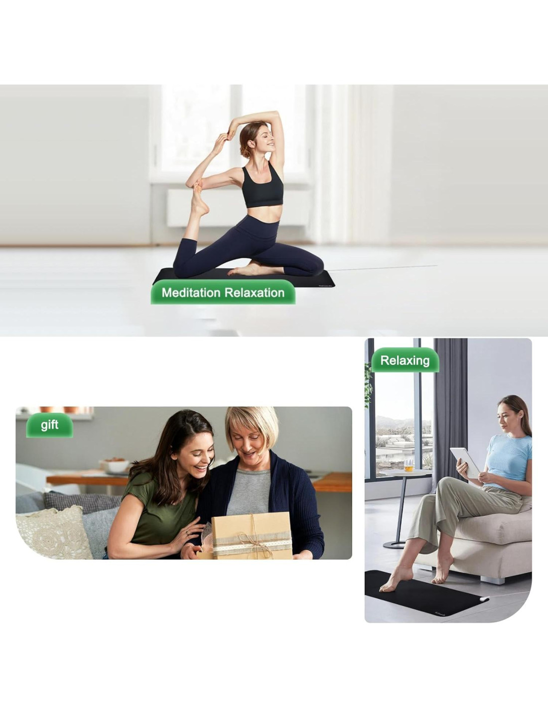 - CÓMO USAR: Desenrolla la almohadilla de conexión a tierra y colócala donde desees. Conecta el cable de conexión a tierra a la alfombrilla de conexión a tierra y conéctalo en el enchufe de tierra de tu toma de corriente. Las sábanas de conexión a tierra no funcionan con electricidad, asegurando que tu uso sea muy seguro. Asegúrate de que la piel desnuda de tus manos, pies o cualquier otra parte de tu cuerpo esté en contacto con la almohadilla de conexión a tierra durante su uso. Entonces disfrutarás de los mejores beneficios de conexión a tierra.