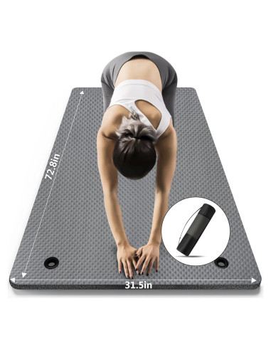 - Extra gruesa y ancha para mayor comodidad: la esterilla de yoga extra gruesa de 2/5 pulgadas (1.9 cm) ofrece un soporte acolchado cómodo y absorción de impactos, y alivia el estrés en puntos de presión como articulaciones, caderas, manos y rodillas. El tamaño extra ancho de 72.8" x 31.5" (185.4 cm x 80 cm) es adecuado para yoga, gimnasio, pilates y fitness.