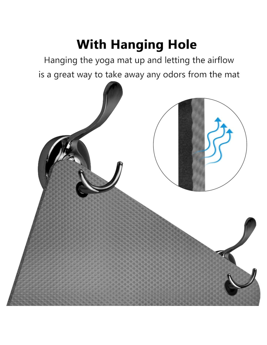 - Colgable y Fácil de Limpiar: Puedes colgar la esterilla de ejercicio a través del agujero de colgar para permitir la circulación de aire y eliminar el olor a sudor. Es fácil de mantener limpia y fresca para tu próximo entrenamiento. Usa una mezcla de jabón suave y agua, limpia y cuélgala para secar. No sumerjas.
