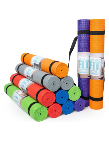 Sin comprometer la calidad y el rendimiento, la Esteras de Yoga Clásicas de Upward Fit proporciona a escuelas, aulas y estudios esterillas económicas. Nuestras esterillas de yoga al por mayor incluyen esterillas envueltas individualmente para que los estudiantes y principiantes puedan realizar una variedad de actividades físicas. La superficie texturizada proporciona tracción para ofrecer un apoyo estable y equilibrado al cambiar o mantener posturas durante períodos prolongados, ideal para personas que comienzan con yoga, pilates o ejercicio. Ya sea que estés estable en una postura, estirando o haciendo planchas, acolcha tus rodillas y articulaciones cómodamente con el grosor de 4 mm de cada esterilla de estiramiento. Con una construcción de espuma de vinilo de celda cerrada de alta calidad, estas esterillas de ejercicio crean una barrera contra líquidos para mantenerse limpias por más tiempo entre clases para un fácil mantenimiento. Para limpiar cada esterilla, límpiala con una mezcla 50/50 de agua y vinagre, luego déjala secar al aire antes de enrollarla nuevamente. Dimensiones: 172.72 cm x 60.96 cm x 4 mm