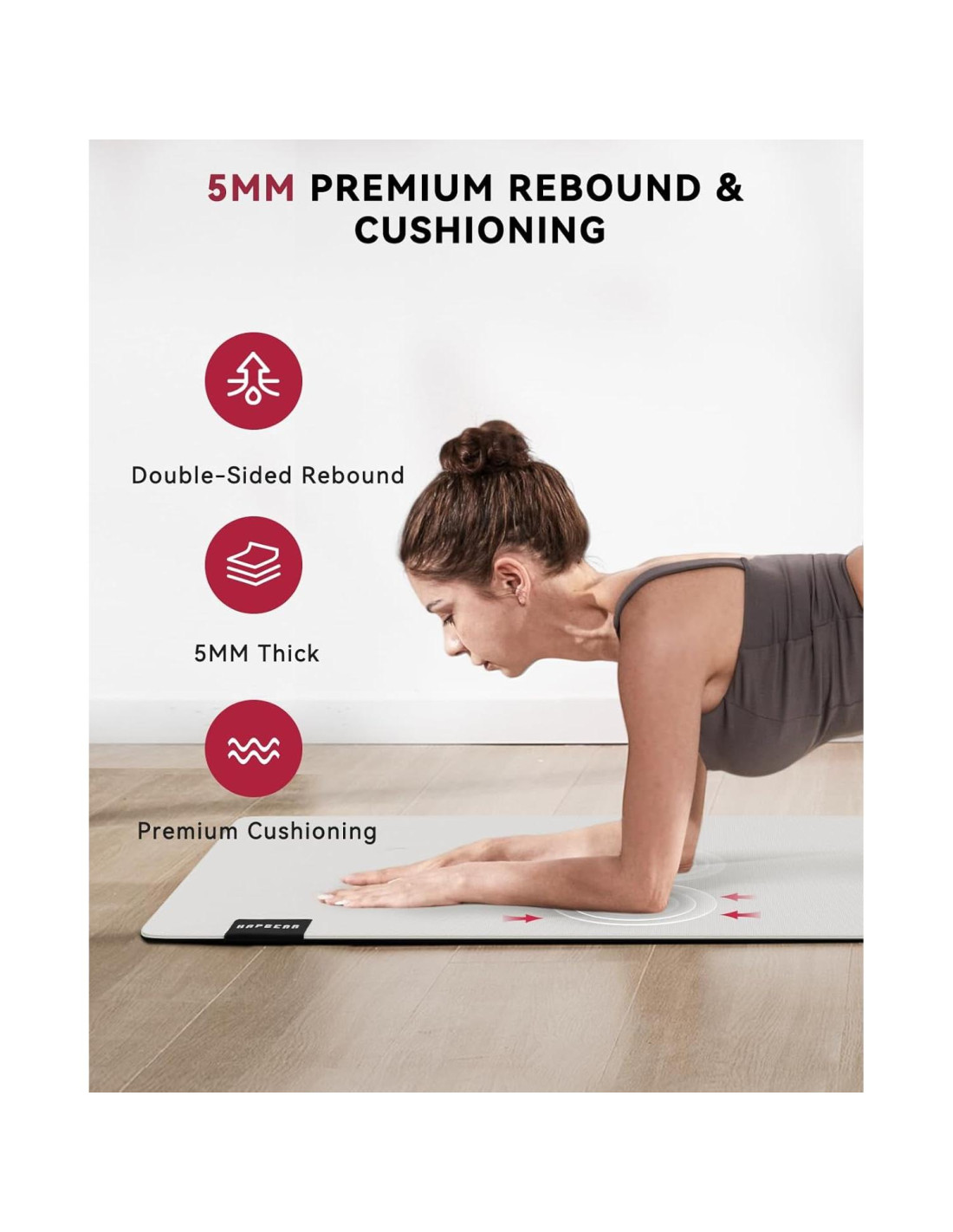 - Soporte Acolchado de 5mm : Fabricada con una capa de goma de alta densidad de 5mm, esta esterilla de yoga gruesa ofrece una excepcional absorción de impactos, reduciendo efectivamente la presión en las articulaciones durante yoga, Pilates y entrenamientos HIIT. Ideal tanto para principiantes como para atletas experimentados que buscan mayor comodidad