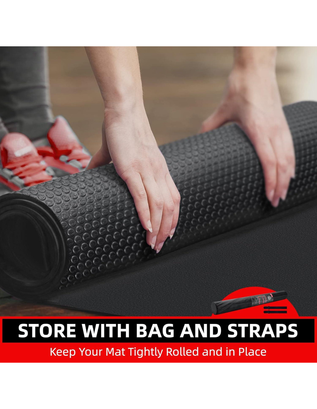 - Fácil Almacenamiento con Bolsa y Correas: Incluye una bolsa de transporte y 3 correas de gancho y bucle para enrollar y almacenar de manera segura; se incluye una toalla de microfibra (27'x16' (0.69m x 0.41m)); superficie impermeable mantiene la humedad y el sudor fuera de la alfombrilla; fácil de limpiar con un rápido paño; pon la alfombrilla de fitness en la bolsa y llévala contigo en tu viaje de fitness; también puedes mantenerla afuera todo el tiempo para un acceso rápido y fácil