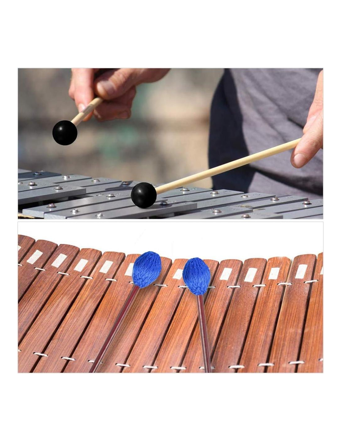 - Paquete Incluido: 1 par de mazas de marimba de hilo azul, 1 par de mazas de marimba de cabeza de goma negra, adecuadas para tocar marimbas, xilófonos y instrumentos de percusión auxiliares.