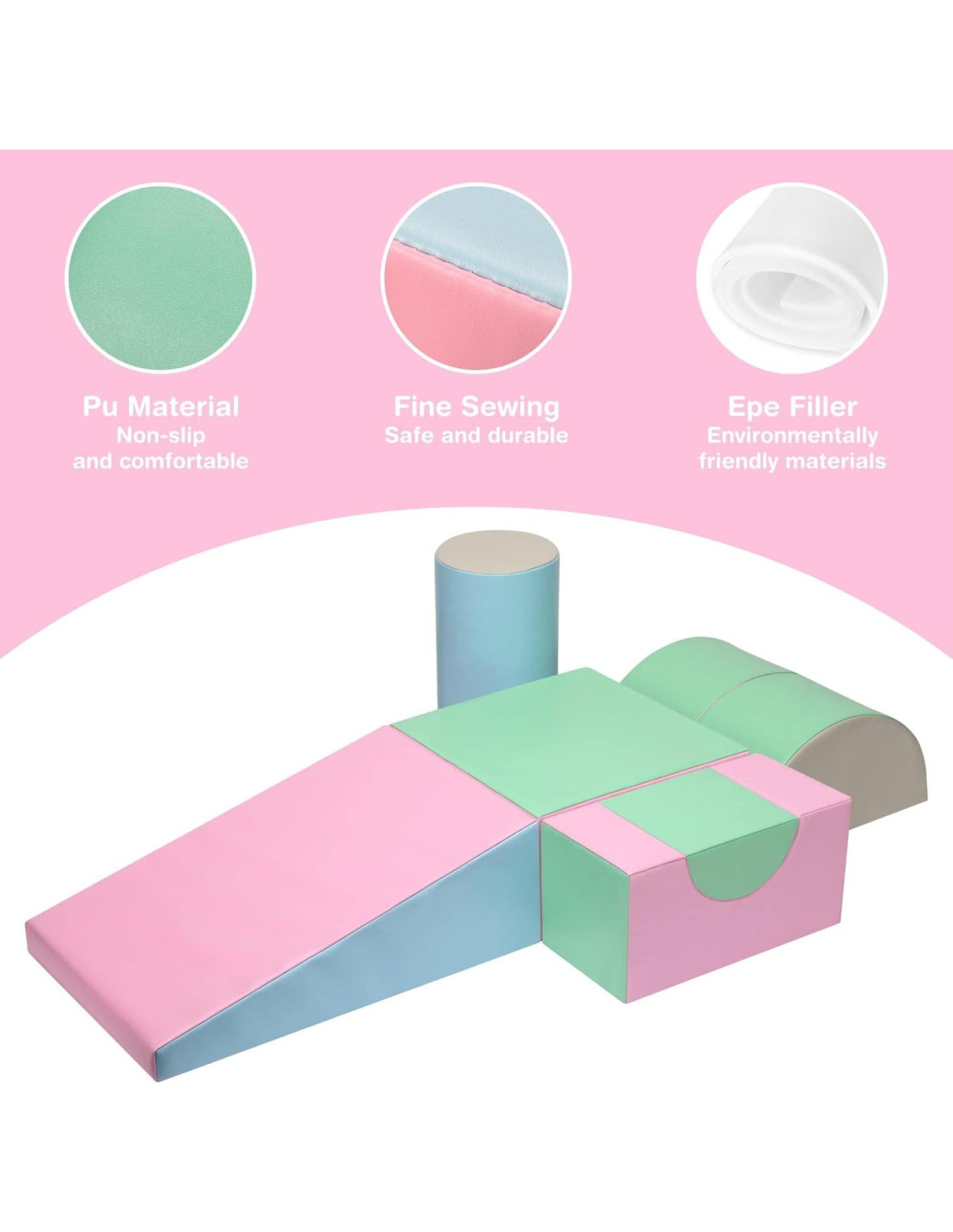 - Suave y Resistente para Aventuras Seguras: Fabricado con espuma densa y no tóxica y un exterior de cuero PU amigable para niños, este conjunto de juego amortigua las caídas mientras apoya el juego activo. Perfecto para escalar, gatear y rodar, ideal para pequeños exploradores que construyen confianza.