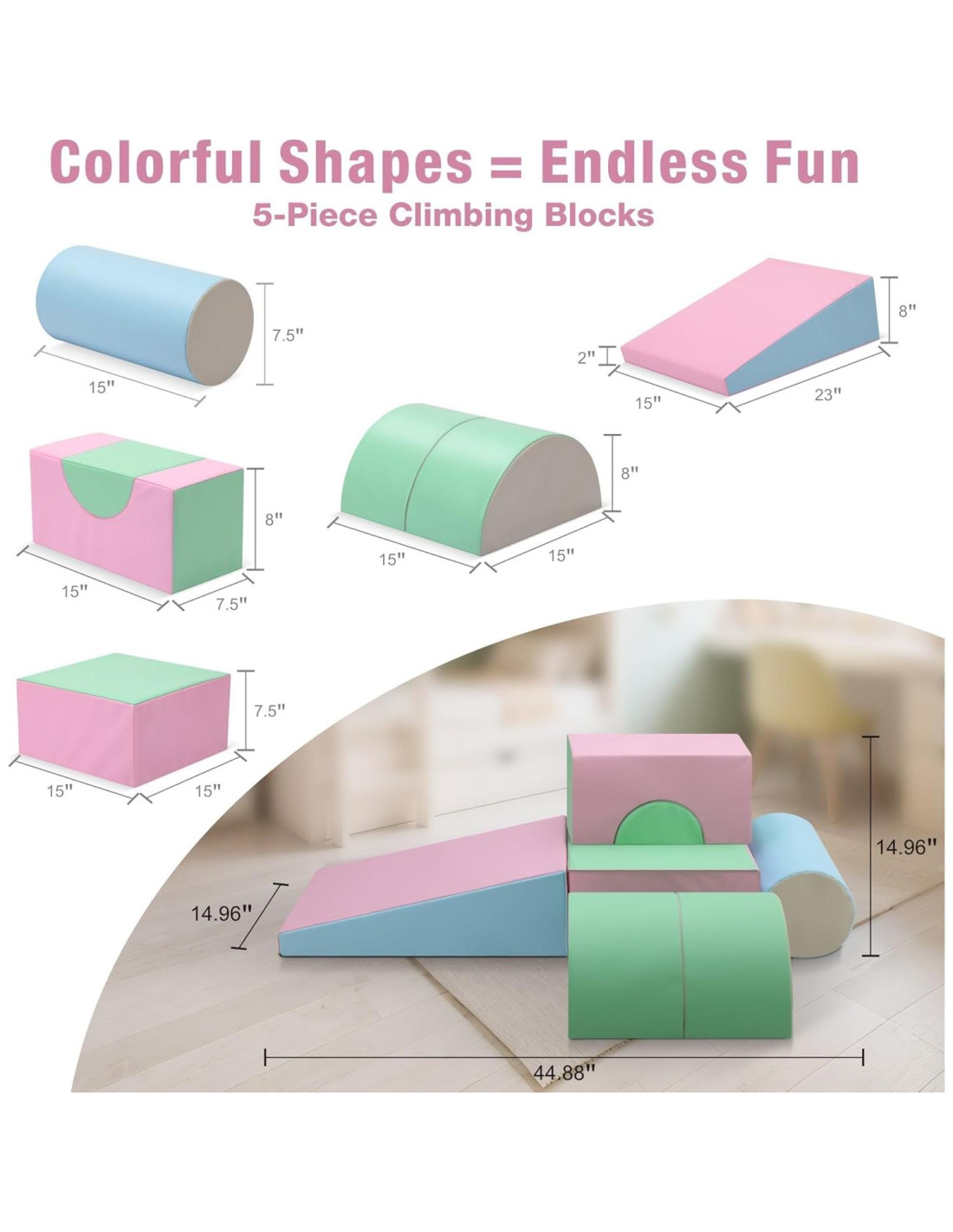 - Formas Coloridas = Diversión Sin Fin: Mezcla y combina 5 piezas de espuma vibrantes (escalera, tobogán, cilindro y más) para crear estructuras personalizadas. A los niños de 1 a 5 años les encanta apilar, deslizar y reorganizar formas, despertando la creatividad mientras mejoran el equilibrio y la coordinación.