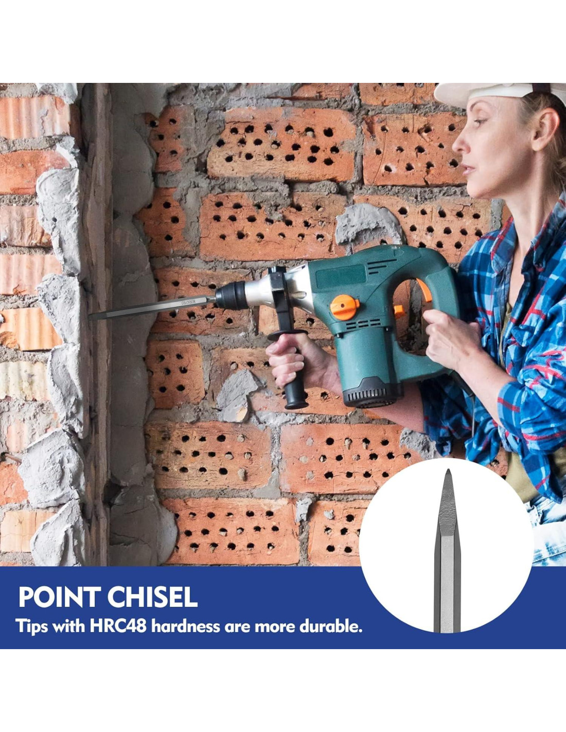 - Brocas de alta calidad: El carburo cementado YG8C proporciona una dureza y durabilidad excepcionales, haciendo que las brocas sean perfectas para quitar ladrillos, concreto, piedras y otros materiales de construcción de mampostería