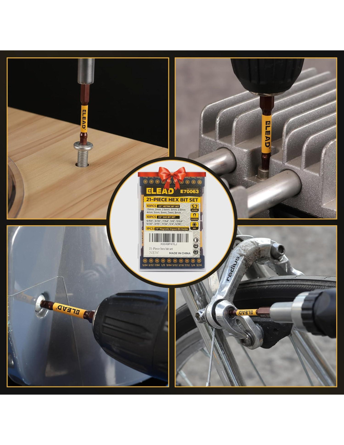 - RANGO COMPLETO DE TAMAÑOS - El conjunto integral incluye 10 brocas hexagonales métricas y 10 SAE, cubriendo tamaños desde 1.5mm hasta 8mm y de 5/64 pulgadas (1,98 cm) a 5/16 pulgadas (0,79 cm), asegurando el ajuste perfecto para cualquier tornillo.