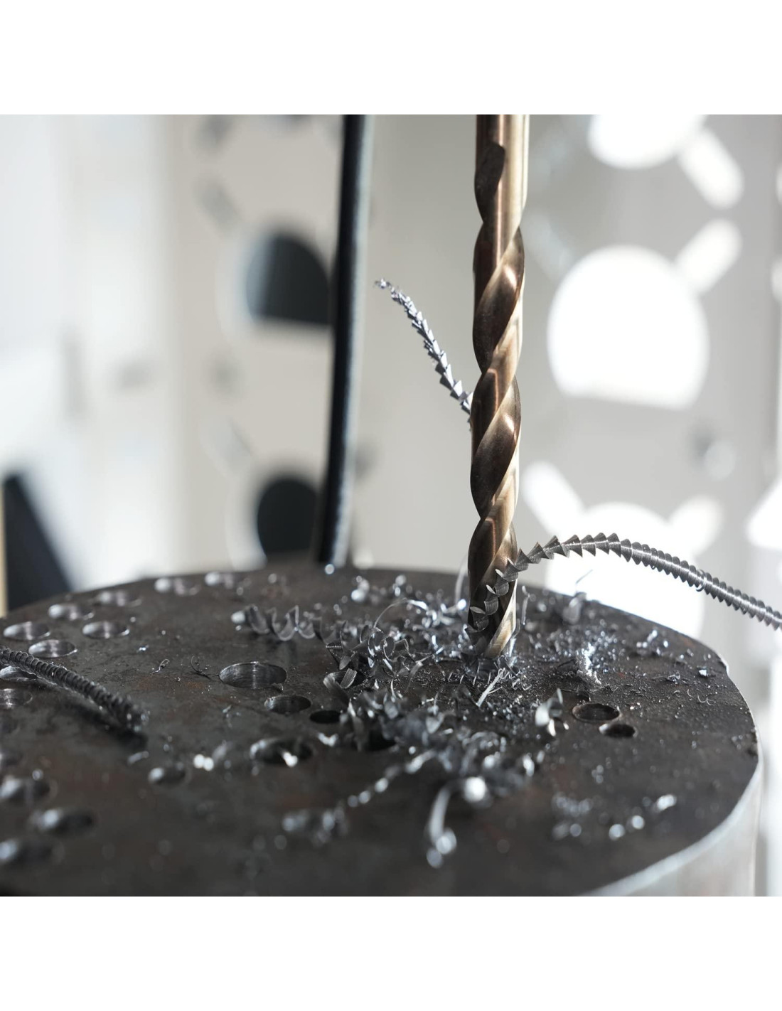 - Material de Aleación M35 Mejorado: Estas brocas contienen 5% de acero de aleación de cobalto, lo que aumenta la resistencia al desgaste y la durabilidad. Juego de brocas de acero de alta velocidad de grado industrial, más duro que el HSS 4241 utilizado en otros juegos de brocas similares