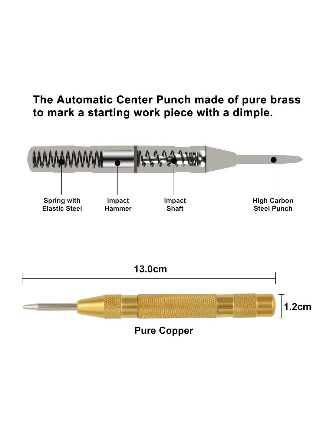 - EXCELENTE PUNZÓN: Perfecto ayudante de punzón central, marca la pieza de trabajo con un punto para evitar que los tornillos y brocas se desvíen.