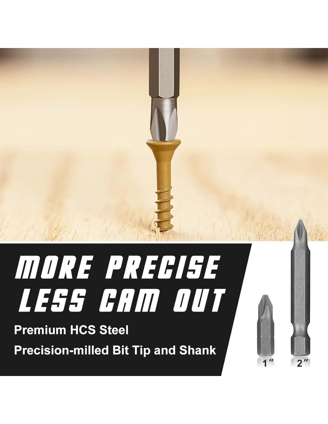 - [CAPACIDAD Y DURABILIDAD] - Las brocas y puntas de destornillador están hechas de material HSS superior para mejorar la resistencia y durabilidad. Y el acabado de titanio y el recubrimiento de óxido negro ayudan a que las brocas ofrezcan un mayor rendimiento de perforación en madera y metal. Ya seas mecánico o entusiasta del bricolaje, este kit de brocas te asistirá en cada aplicación.