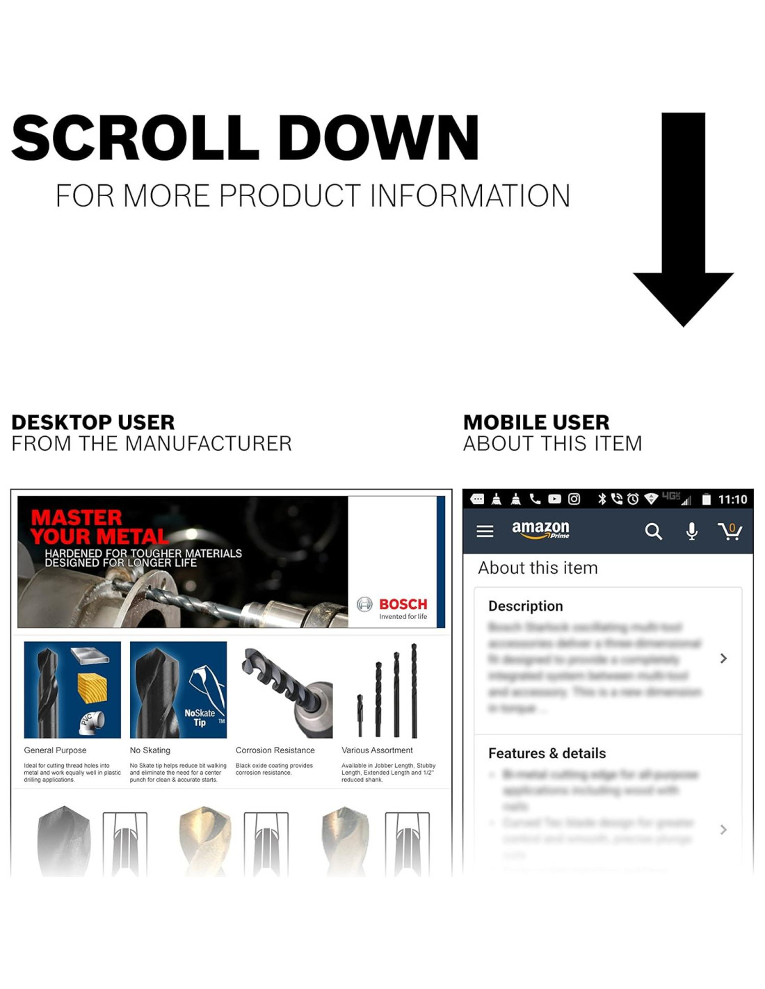 Descripción del Producto La línea de brocas de metal de BOSCH ofrece una solución para cada aplicación profesional. Cada broca se fabrica con especificaciones exactas y cuenta con un punto dividido que comienza al contacto sin caminar ni patinar, eliminando la necesidad de un punzón central. Las brocas de óxido negro de BOSCH ofrecen una durabilidad, velocidad y selección superiores para apoyar la mayoría de las aplicaciones de propósito general. Desde el Fabricante Las brocas de óxido negro de Bosch ofrecen una durabilidad, velocidad y selección superiores para la mayoría de las aplicaciones de propósito general. Mejor para perforar agujeros en metal y funcionan igualmente bien en perforaciones de madera y plástico. Usar en acero, cobre, aluminio, latón, roble, arce, MDF, pino, PVC, policarbonato, acrílico, ABS, nylon y materiales compuestos.