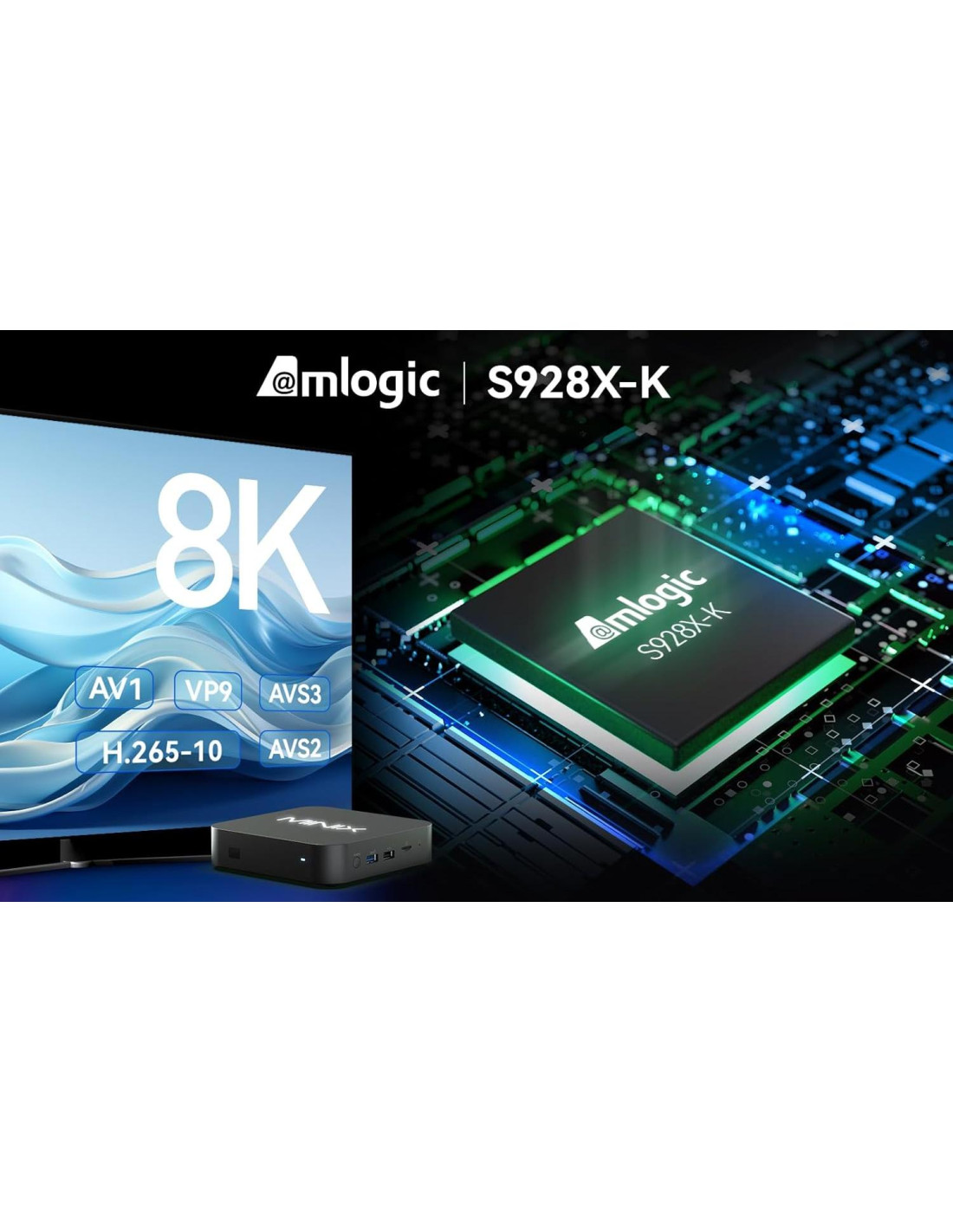 - Reproducción de Video 8K ULTRA HD: Experimenta el futuro de la claridad visual con reproducción de video 4K/8K UHD sin interrupciones. Disfruta de una amplia variedad de formatos de video, incluyendo AV1, VP9, H.265-10, AVS3 y AVS2, para una inmersión visual sin igual