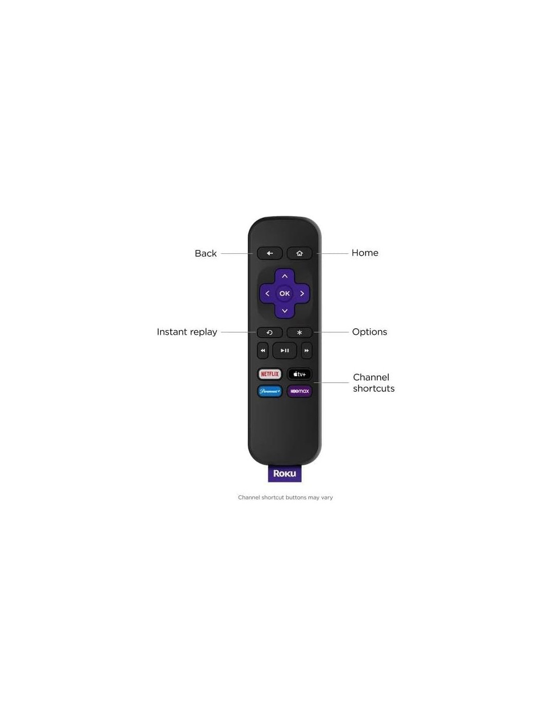 - Control remoto estándar: Tiene todo lo que necesitas para comenzar a transmitir, además de botones de acceso directo a canales de streaming populares
