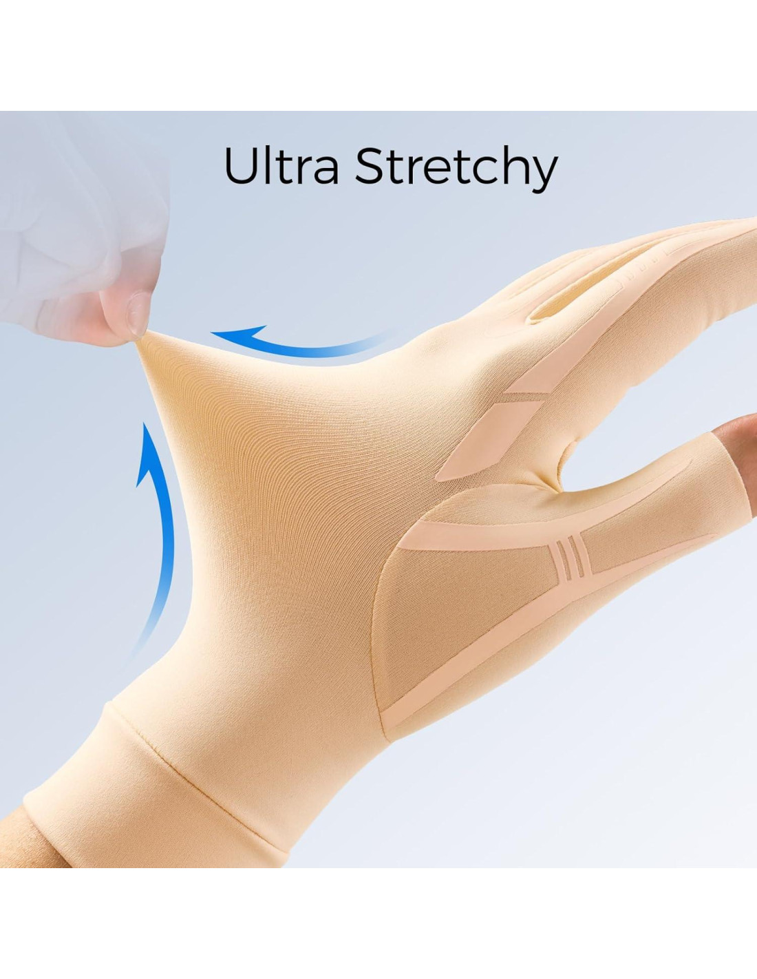 - Compresión de 360, detén el dolor de mano. Estos guantes de artritis de compresión se extienden desde las yemas de los dedos hasta la muñeca. Envoltura de 360 grados alrededor de todo el hueso metacarpiano y el pulgar, envolviendo suavemente todas las articulaciones de la mano. Te permite deshacerte de la artritis, el síndrome del túnel carpiano, la hinchazón y el dolor nervioso.