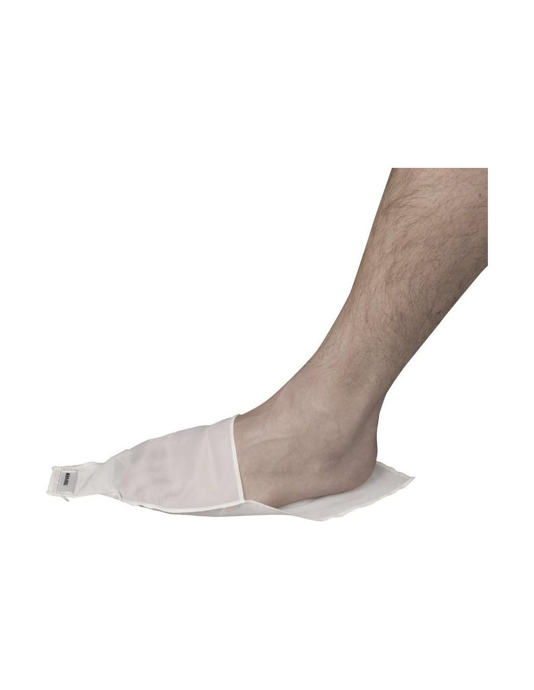 La parte más difícil de aplicar medias de compresión médica a menudo es ponérselas sobre el talón y el tobillo. El Truform Slip Sock está diseñado para ayudar a que las medias de punta abierta se deslicen suavemente sobre el pie y el tobillo al reducir la fricción entre la piel del paciente y la media de compresión. Instrucciones: Deslice el Slip Sock sobre el pie y voltee la media al revés hasta el talón. Deslice la media sobre el Slip Sock hasta que su talón esté centrado en el bolsillo del talón de la media. Comience a voltear la parte derecha hacia afuera gradualmente por la pierna para aplicar la media. El Slip Sock se puede quitar tirando suavemente a través de la abertura del dedo del pie de la media.