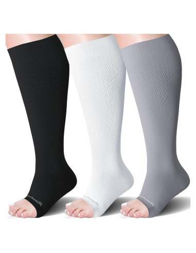 - Calcetines de compresión mejor valorados: Los calcetines de compresión para mujeres y hombres sin dedos están confeccionados con materiales de alta calidad, suaves, que absorben la humedad y son transpirables. Cuentan con un estiramiento en cuatro direcciones para facilitar su uso y durabilidad. Disponibles en varios colores y tamaños (S, M, L, XL, 2XL y 3XL), estos calcetines bonitos brindan un poderoso soporte, energizando tus piernas y asegurando que cada paso esté lleno de vitalidad.
