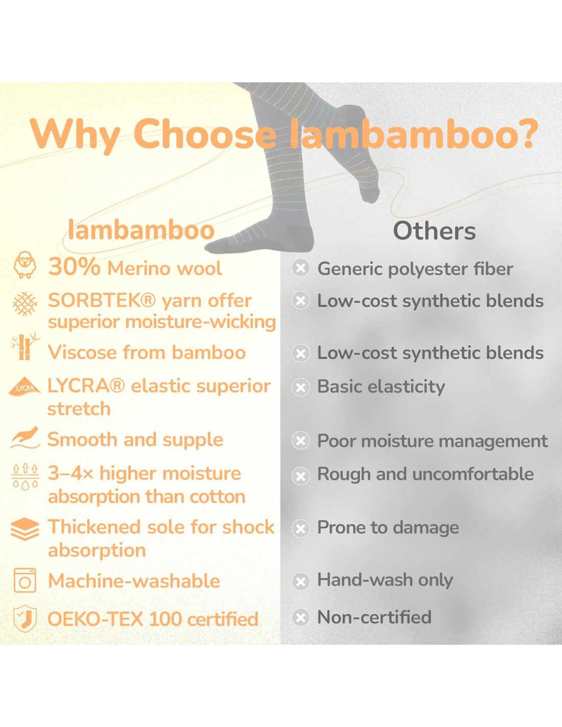 - Ultra Suave y Transpirable: Los calcetines de compresión están hechos de LANA MERINO y VISCOSA de BAMBU, que son anti-olor, absorben la humedad, termorreguladores, transpirables, ultra-suaves, ligeros, perfectos para la comodidad en todas las estaciones. El Soporte de Arco ayuda a optimizar la fuerza del pie, el Cierre de Punta Sin Costuras protege tus dedos