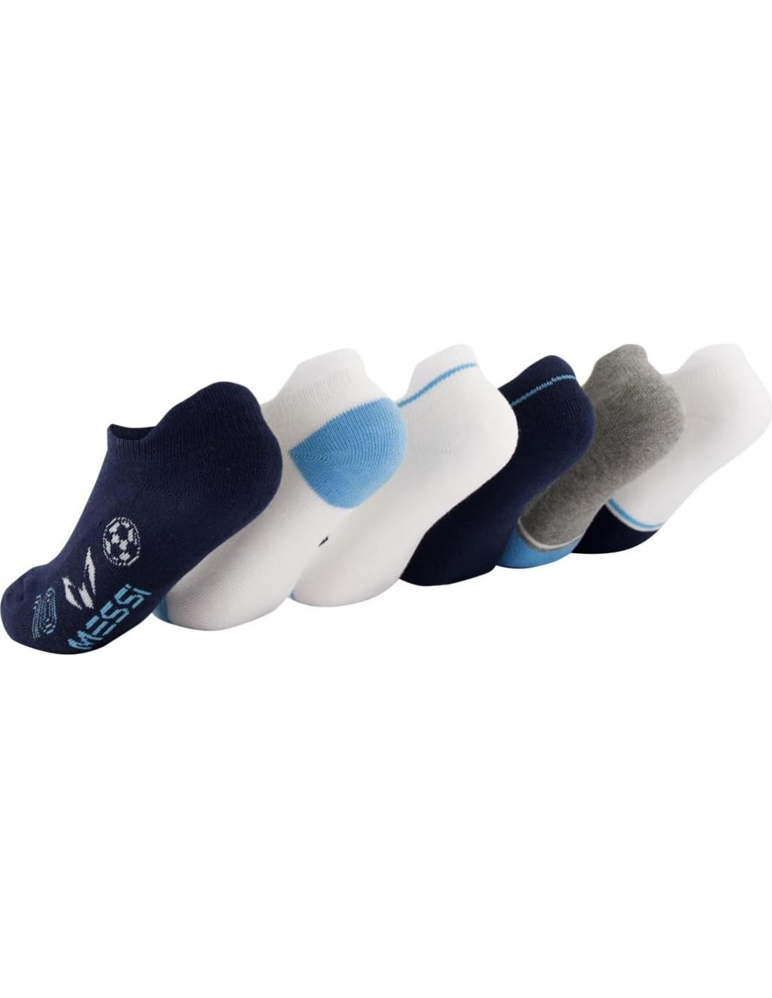 - CALCETINES MESSI PARA NIÑOS: Entra en comodidad con estos calcetines no-show de Messi que son extra suaves y elásticos. Nuestro set de 6 calcetines sin costuras está listo para la acción en tallas mediana y grande.