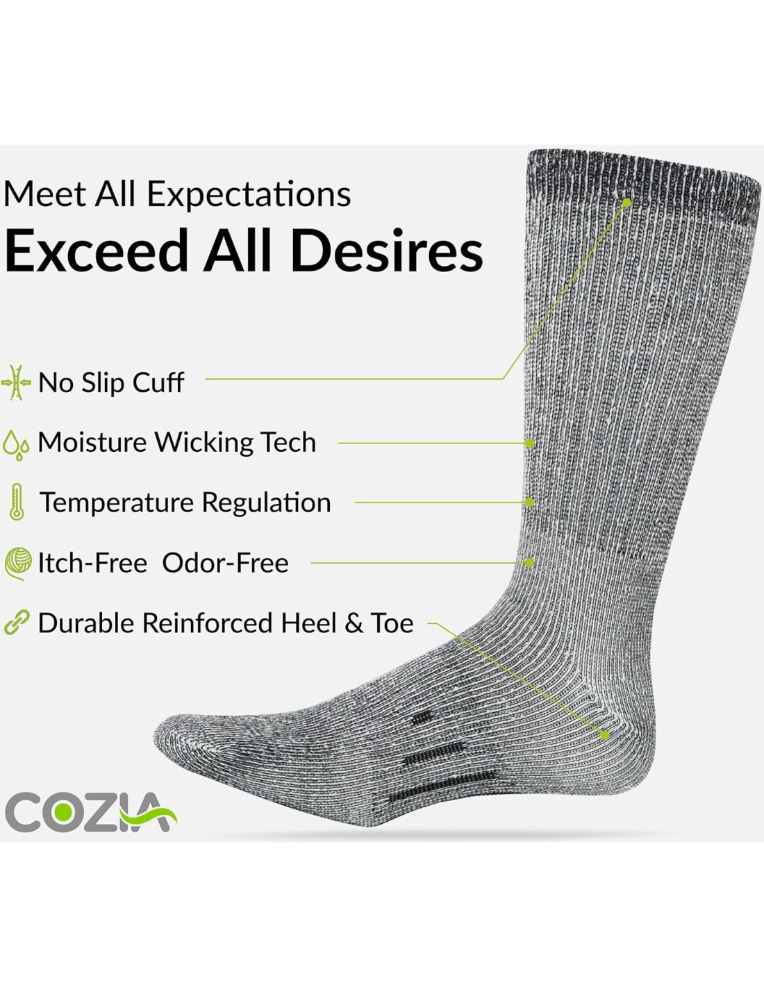 - CALCETINES DE INVIERNO PARA PIES CON FRÍO - Mantén tus pies alejados del frío, protégelos de la mordaz helada invernal y disfruta de una comodidad superior con los calcetines térmicos Cozia para hombres y mujeres. Nuestros calcetines de lana (hombres) tienen un interior suave y cepillado que te proporciona un ajuste cómodo, ofrece un acolchado mejorado que te hace sentir como si estuvieras pisando una nube y ayuda a mantener tus pies protegidos de las condiciones climáticas adversas.