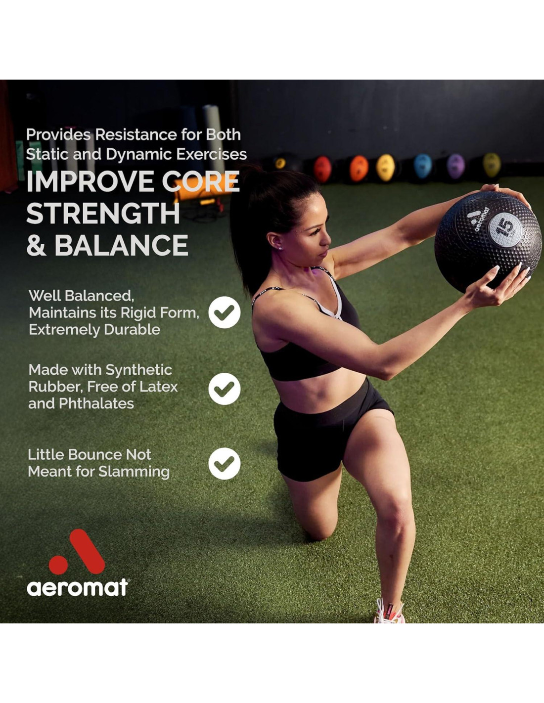 - HECHO CON MATERIALES LIBRES DE LÁTEX: Fabricada con goma sintética libre de látex y ftalatos, esta bola medicinal con peso está diseñada para aquellos con sensibilidades. Ideal para centros de fitness o entrenamientos grupales, esta medball ofrece durabilidad durante cada sesión. Los materiales duraderos aseguran que estas bolas de ejercicio mantengan su condición con el uso frecuente.