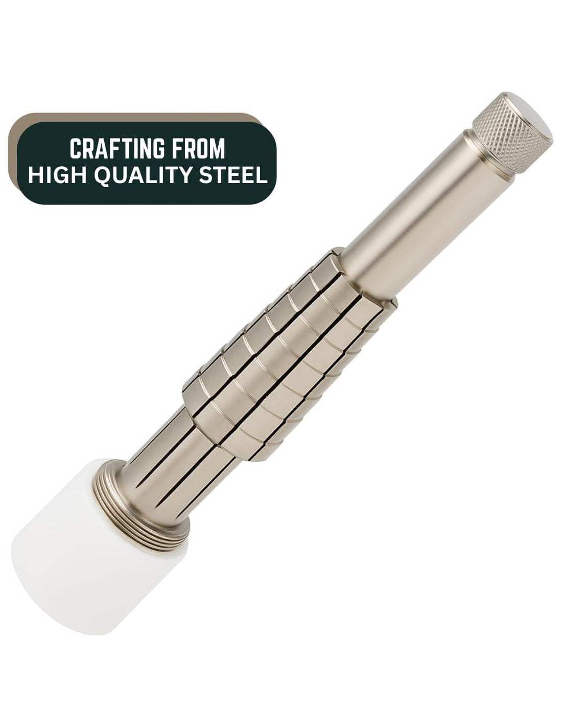 - BASE DE NYLON: El Estirador de Anillos Rathburn tiene una base de nylon robusta que mide 1.25" (3.18 cm) de diámetro, 1.25" (3.18 cm) de altura y 6.5" (16.51 cm) de longitud. Esto asegura que el estirador se mantenga firmemente en su lugar durante el uso y pueda soportar la fuerza requerida para estirar anillos.