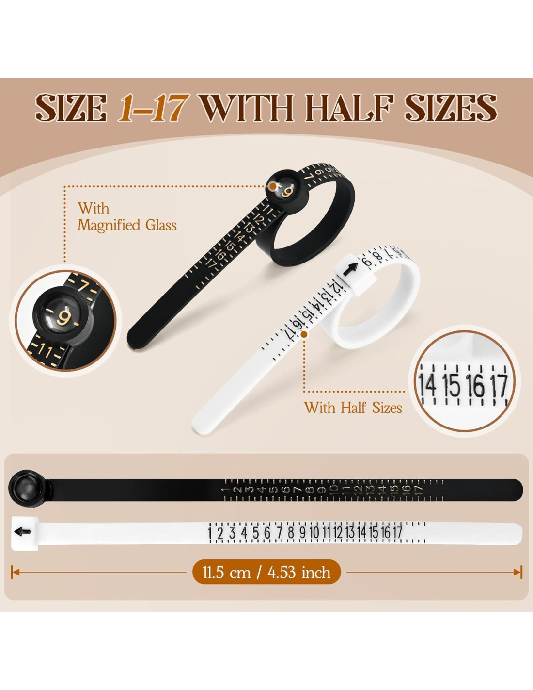 - Herramienta de Medición de Talla de Anillo US 0-17: El kit de medición de anillos de metal de 27 piezas mide tallas de 0 a 13, y 2 cintas de medir anillos de plástico miden tallas de 1 a 17