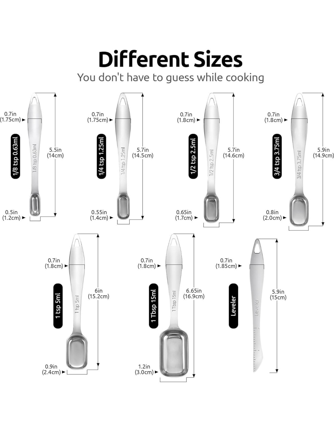 - ¿Cansado de adivinar las medidas mientras cocinas? Cada cuchara medidora de cocina de metal en este juego cuenta con medidas grabadas fáciles de leer en sistema imperial y métrico, asegurando que nunca tengas que adivinar para averiguar el tamaño. Los grabados son profundos y permanentes, por lo que no se desvanecerán ni desgastarán incluso después de muchos usos y lavados, proporcionando medidas precisas y consistentes cada vez que cocines o hornees. Este juego incluye 1/8 cucharadita, 1/4 cucharadita, 1/2 cucharadita, 3/4 cucharadita, 1 cucharadita, 1 cucharada y 1 nivelador.