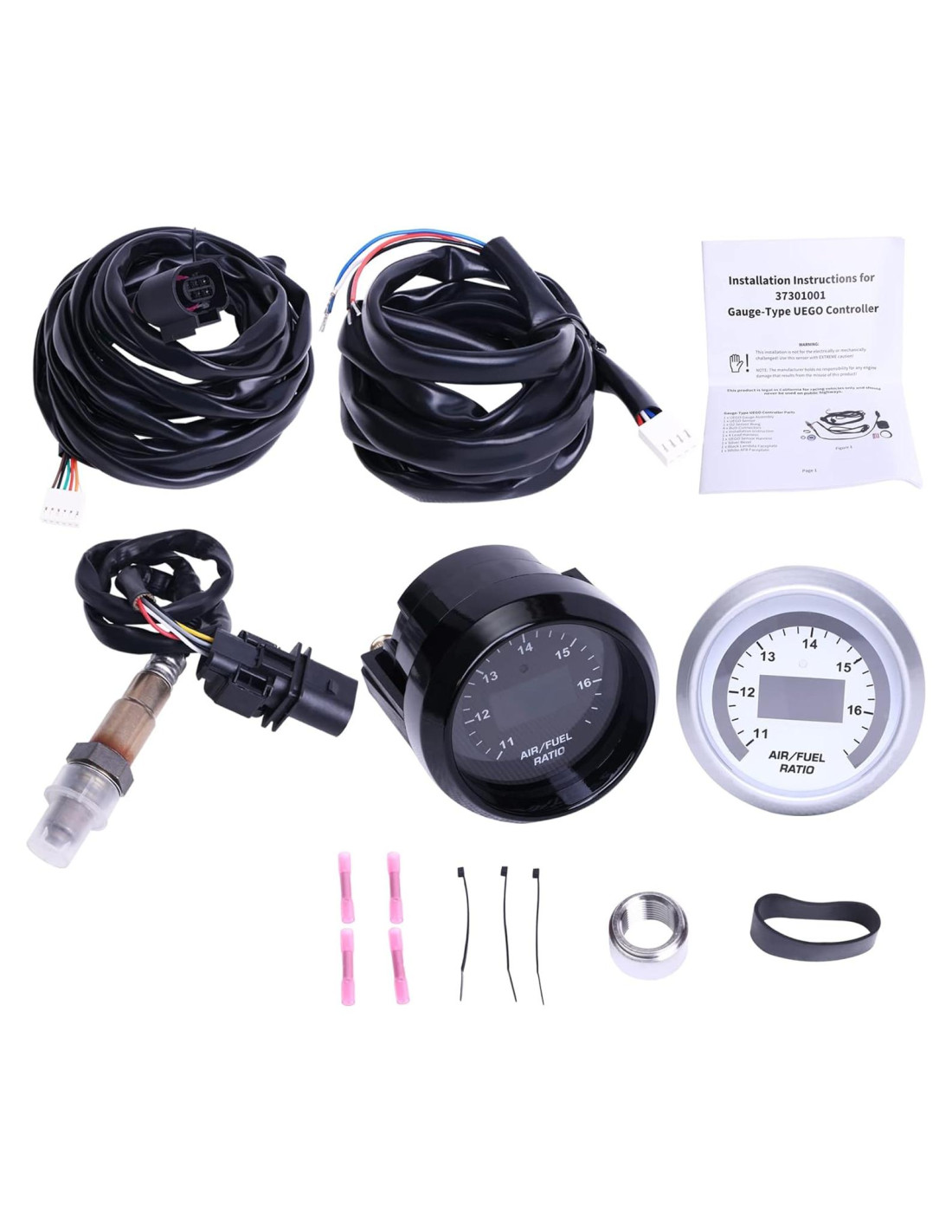 - [MEDIDOR DE RELACIÓN AIRE/COMBUSTIBLE UEGO] Nuestro medidor de AFR O2 de banda ancha tiene una pantalla LED digital y una "aguja" LED que cambia de color a medida que el AFR cambia de rico a delgado; Cada medidor está equipado con biseles en negro y plata y placas frontales en negro y blanco para múltiples combinaciones de colores y apariencia personalizada.