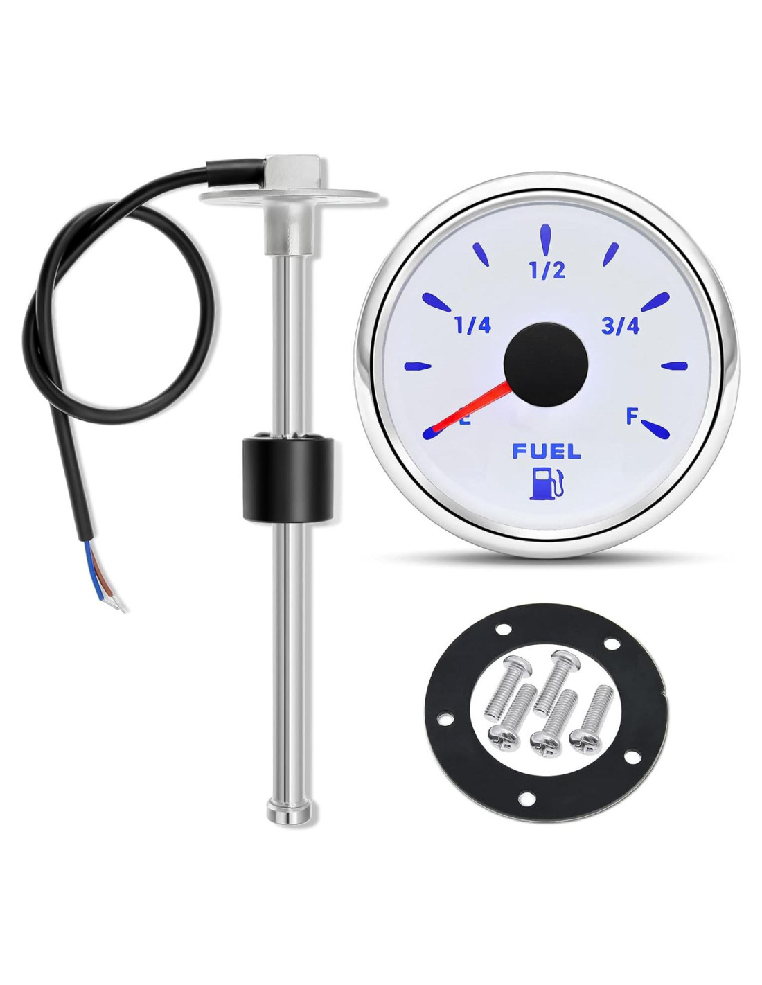 - [Fácil de instalar]: El paquete incluye todos los accesorios, no se necesitan otros accesorios. El paquete viene con 1x medidor de combustible, 1x sensor de combustible para barco, 1x junta, 5x tornillos y 1x instrucciones. Patrón de montaje SAE de 5 agujeros, fácil de instalar y conectar. Las instrucciones bien escritas e ilustradas son directas y fáciles de seguir.