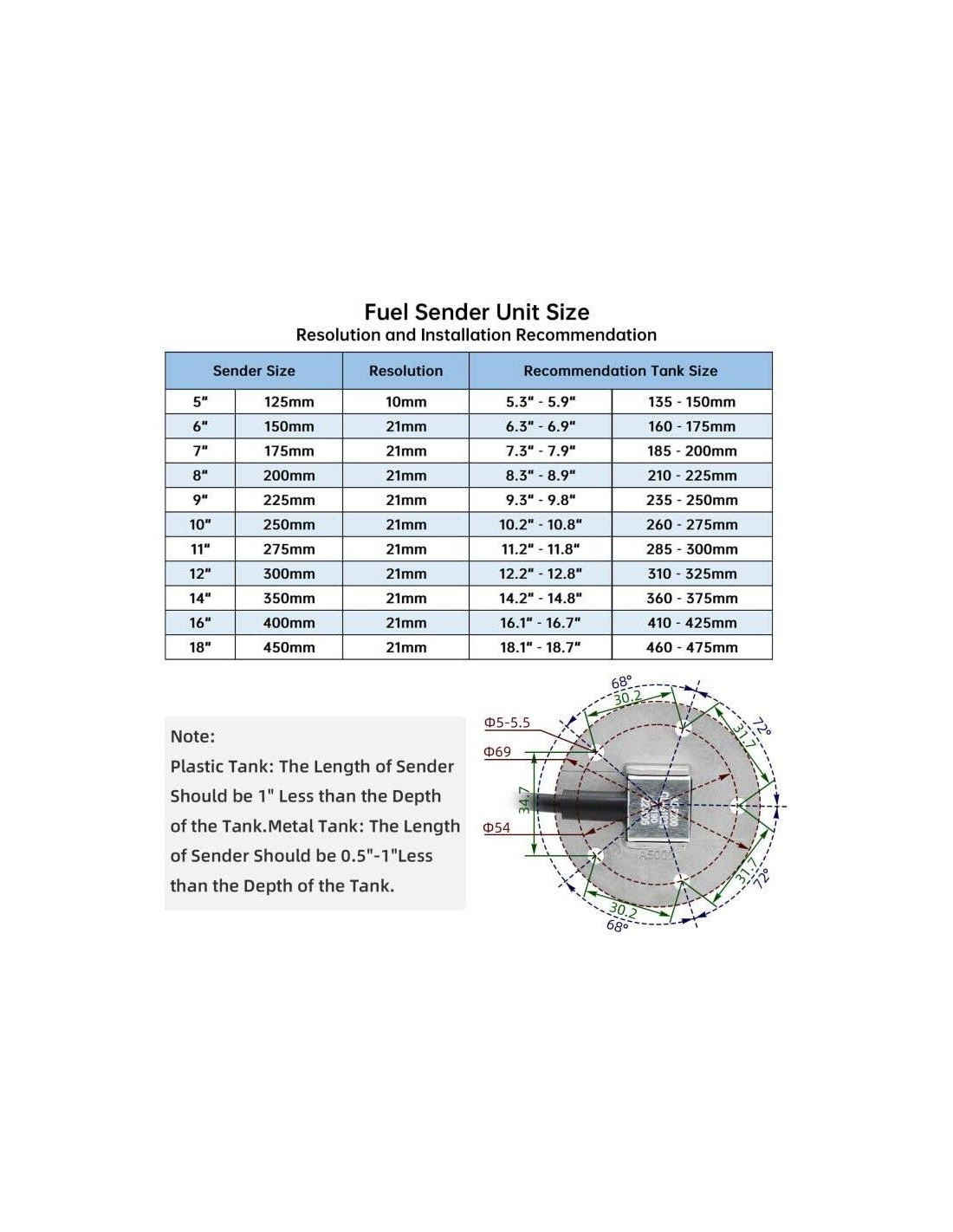 - [Material del sensor de combustible]: La unidad de envío de combustible está hecha de acero inoxidable de alta resistencia. La ventaja de esta unidad de envío de tanque de combustible es el interruptor de lengüeta, durabilidad y fiabilidad, señal de salida estable. No se necesita ajuste para el tanque, indicando con precisión el nivel de combustible del tanque. El sensor de nivel de combustible es adecuado para barcos, automóviles, camiones, autobuses y campo marino.