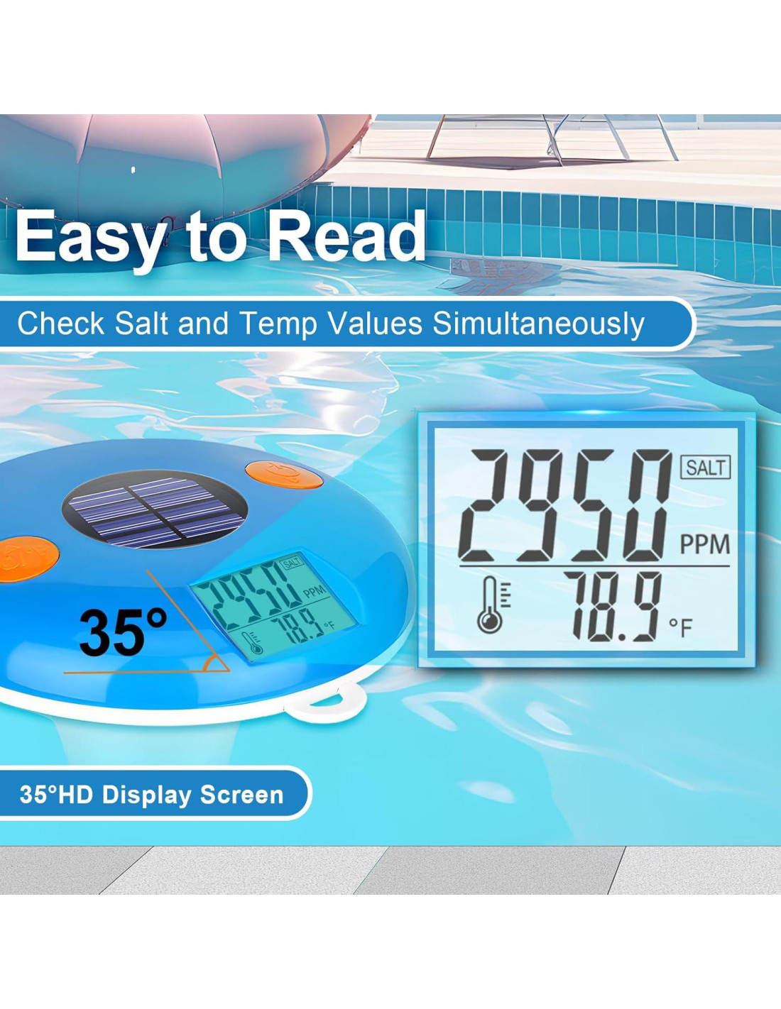 - Termómetro de Piscina Flotante y Medidor de Sal: Probador de Piscina YINMIK = Termómetro de Piscina + Medidor de Sal de Piscina. El Kit de Pruebas de Piscina YINMIK puede medir el nivel de salinidad (0-9990ppm) y el nivel de temperatura (32.0-122.0F/0.0-50.0C). Puedes verificar el valor de sal y el valor de temperatura de tu piscina de agua salada en cualquier momento.