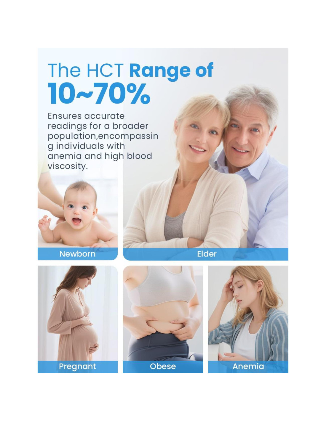 - El kit de prueba de azúcar en sangre IMDK ofrece una precisión mejorada con un rango de HCT ampliado del 10% al 70%. Esto significa que es adecuado para una gama más amplia de personas, incluidos: bebés, embarazadas, anémicos, aquellos con obesidad. Haciéndolo una opción perfecta para chequeos de salud diarios y control de azúcar en sangre para toda tu familia.