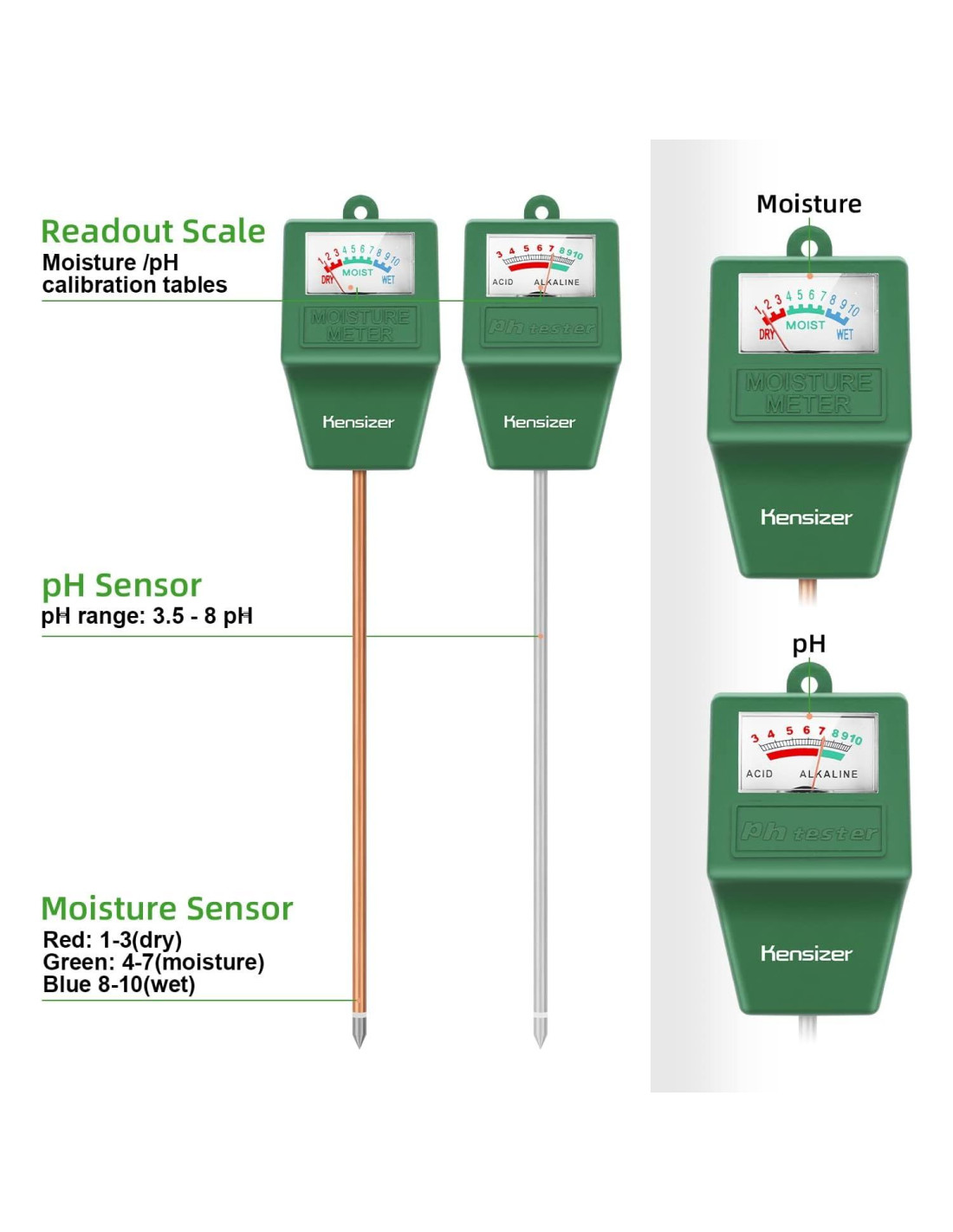 - Medidores de Humedad/pH en un Solo Conjunto - Tablero de lectura clara con puntero de flecha, intervalo de escala amplia y número grande. Ligero y portátil, lo que lo hace conveniente para pruebas en movimiento.