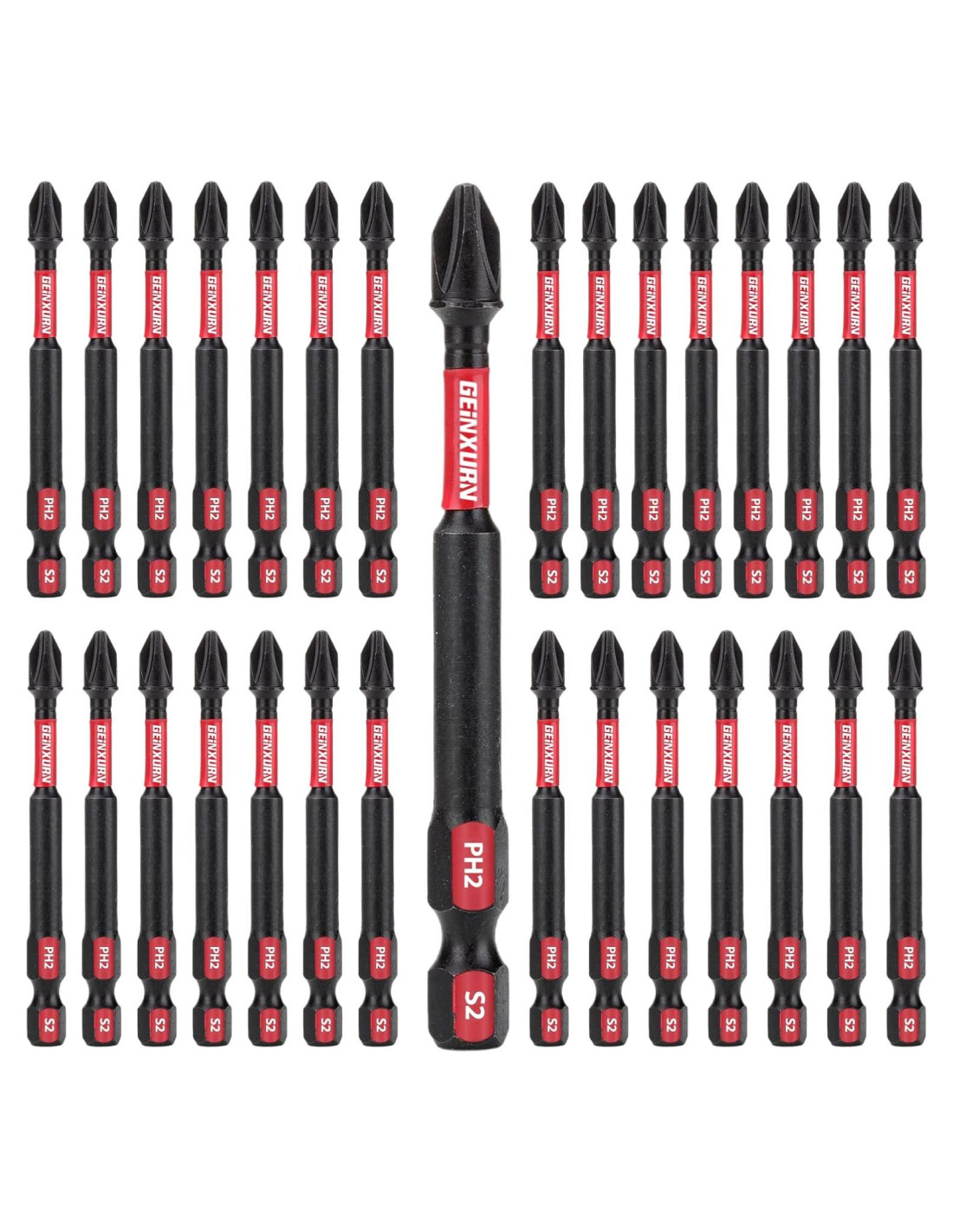 - BIT DE DESTORNILLADOR: 30 piezas de 3 pulgadas (7,62 cm) bits de destornillador PH2, fabricados en acero aleado S2 de alta calidad, que es anti-impacto y resistente, gran resistencia al desgaste.