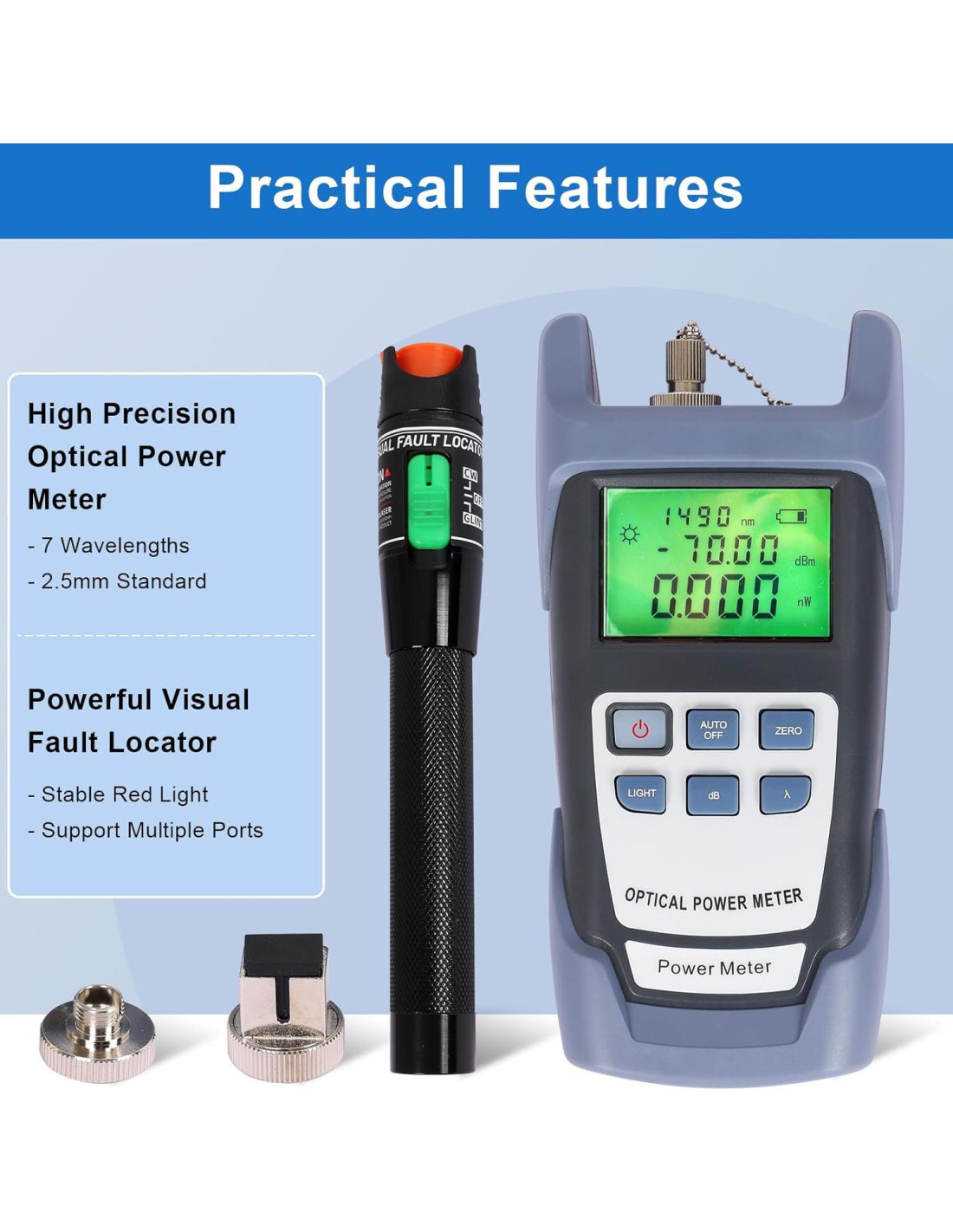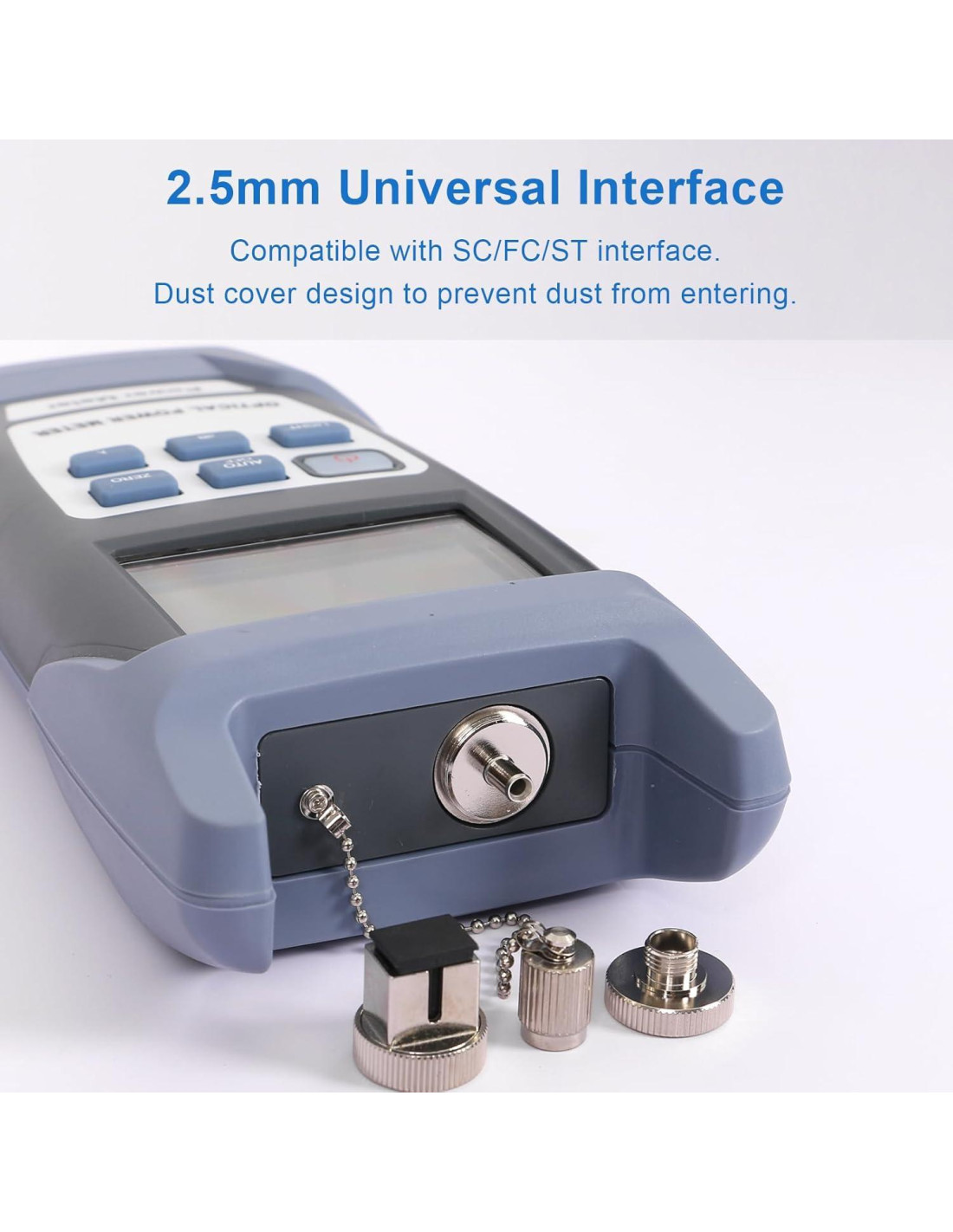 - Probador de Cable de Fibra Óptica: Puede medir 850/980/1300/1310/1490/1550/1625nm y otros 7 longitudes de onda de la potencia óptica absoluta, rango de prueba: -70dBm~+10dBm.