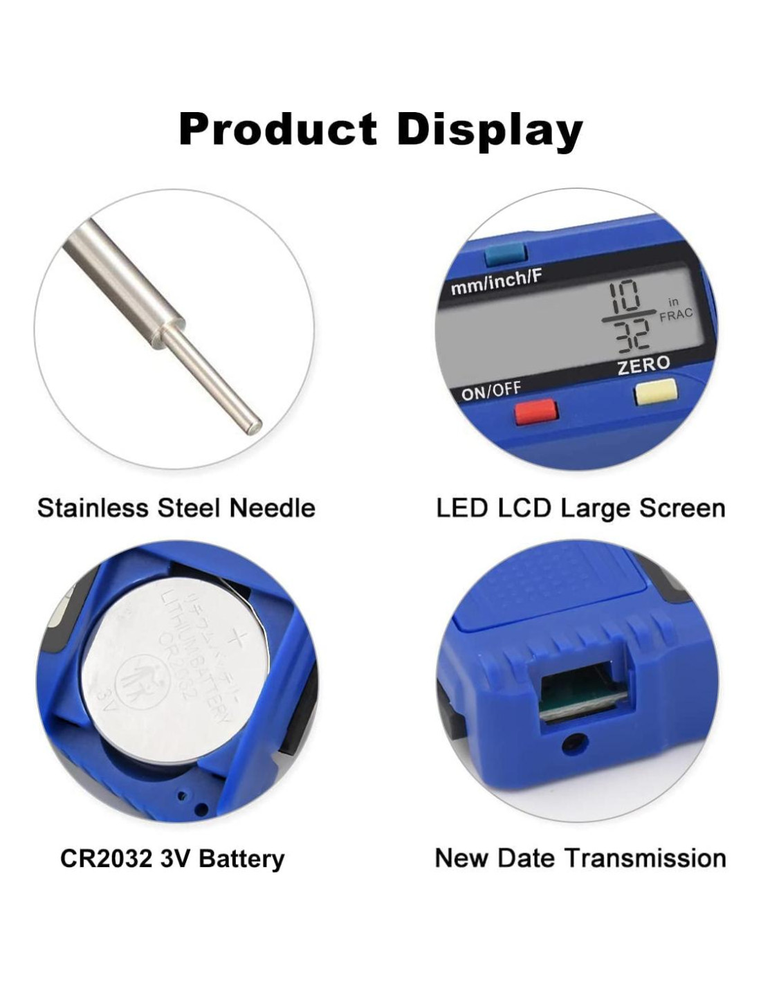 Especificaciones: Rango: 32/32 pulgadas (0-25.4 mm) / 0-1 pulgada Resolución: 0.01 mm / 0.001 pulgadas / 1/32-pulgada Temperatura de trabajo: 0-40 C Batería: CR2032, 3V Material de la punta de barra: Acero inoxidable Características: Gran pantalla LCD Configuración a cero en cualquier posición Intercambio entre sistema métrico / pulgadas Encendido / apagado manual Adecuado para profundidad de banda, desgaste de zapatas de freno y pastillas