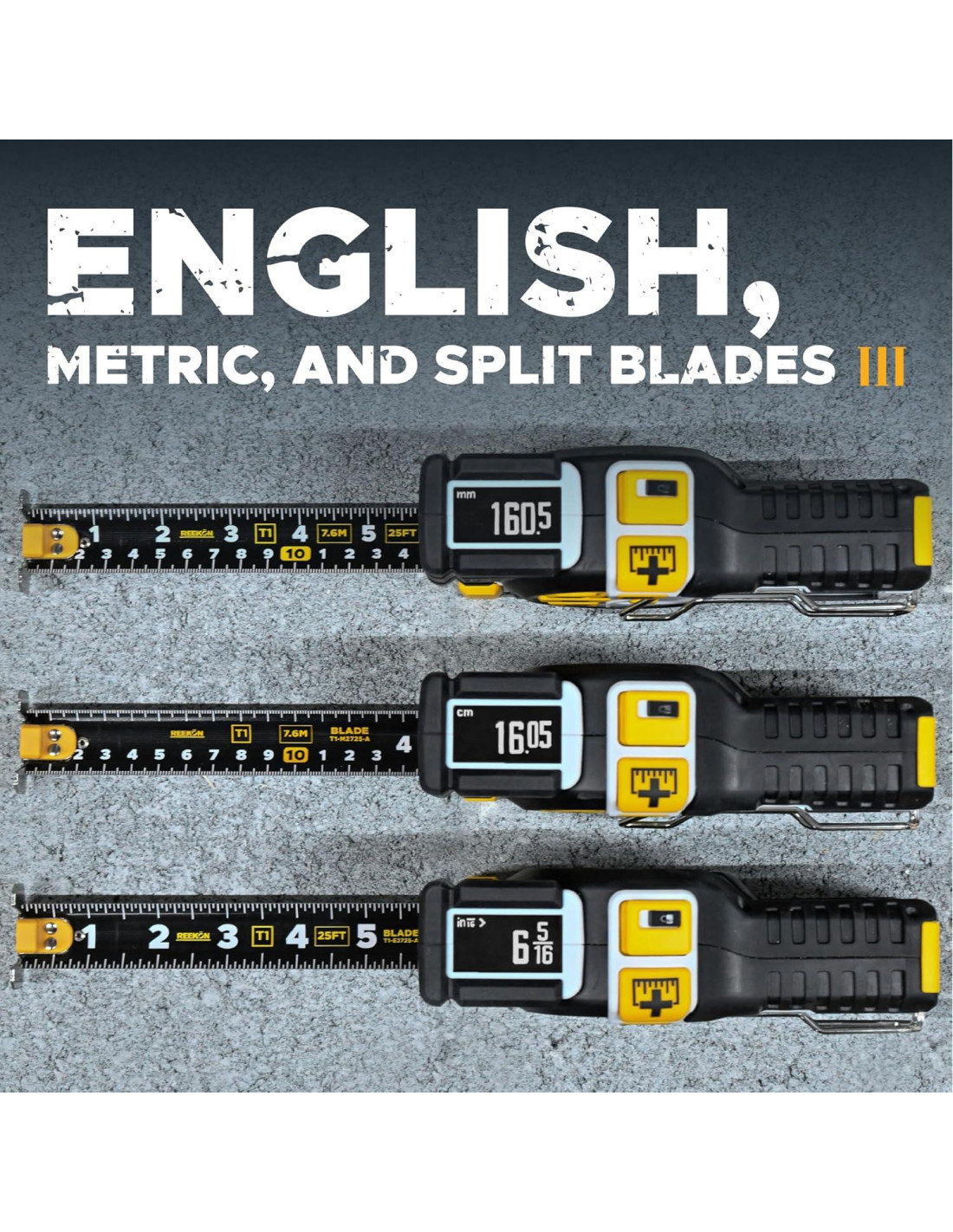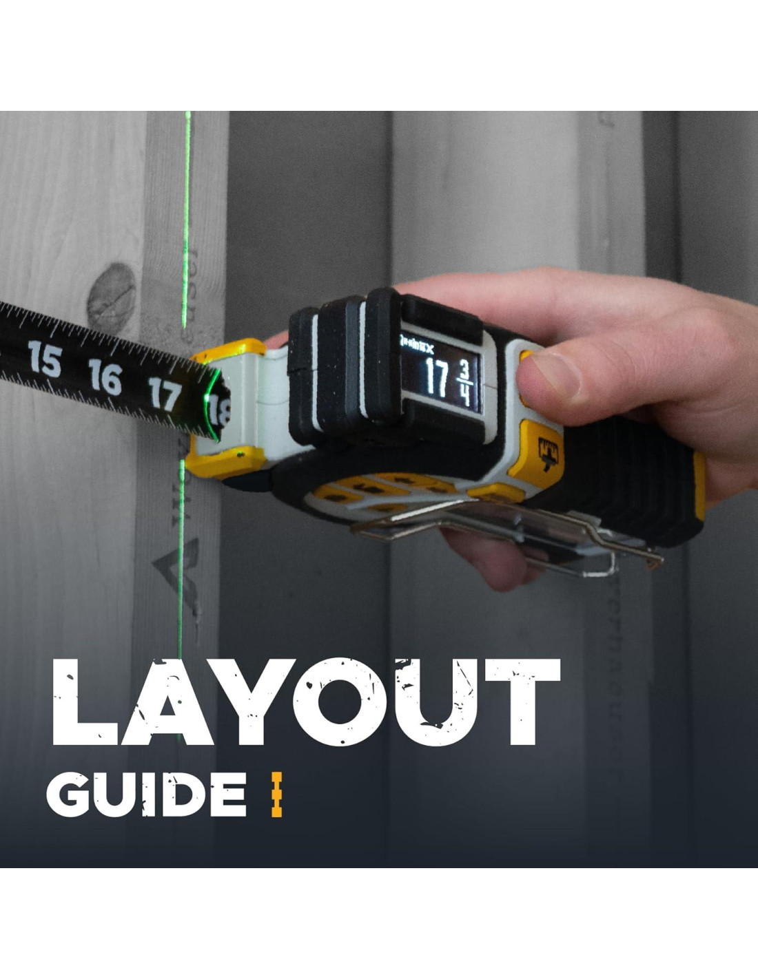 - FUNCIONES INTEGRADAS - Desde el Menú de Acción Rápida, el T1 puede mostrar mediciones internas, mediciones relativas (0 desde cualquier punto) así como encontrar el centro. Cambia entre pulgadas, pies, milímetros, centímetros o pulgadas según sea necesario.