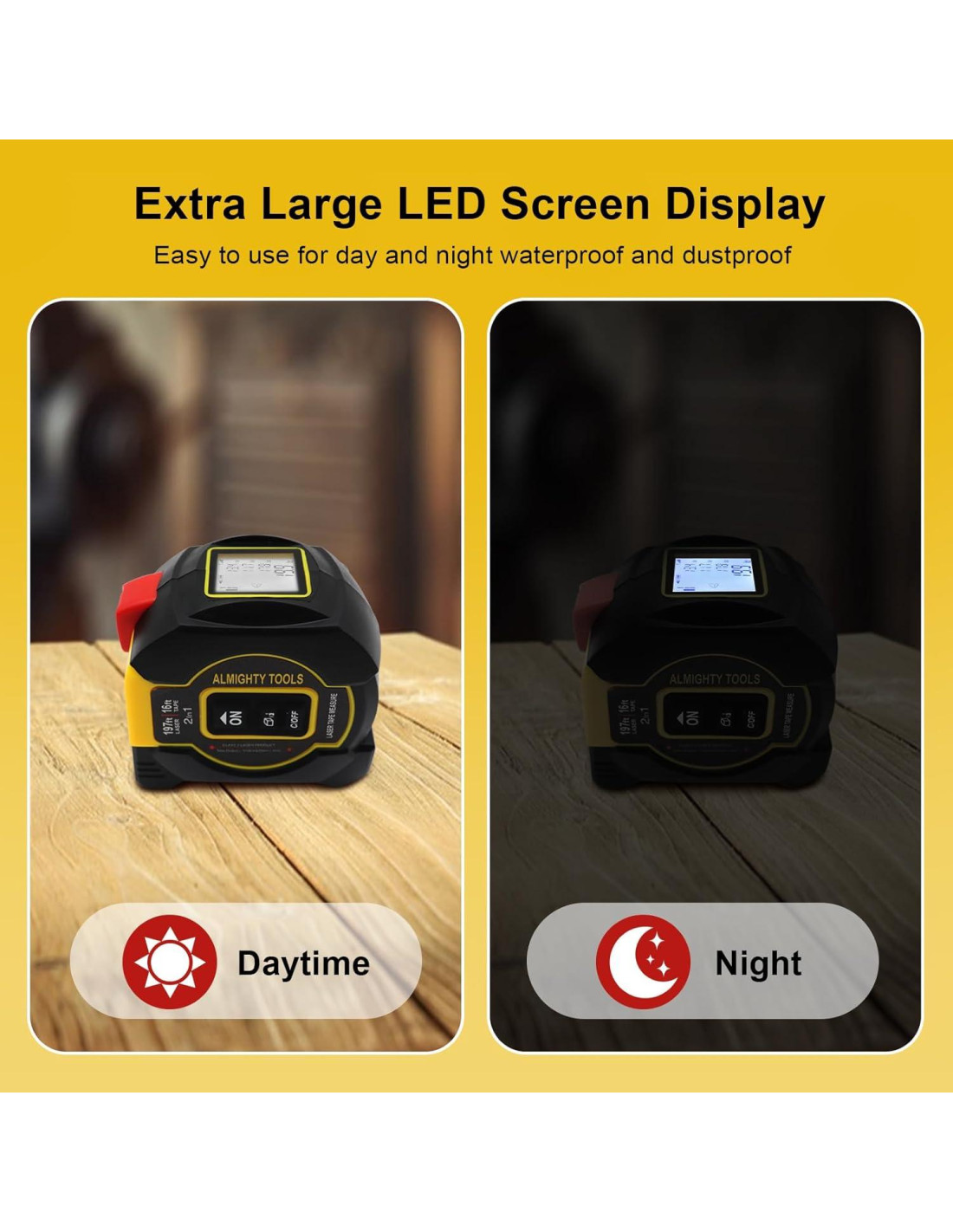 - Cinta Métrica Láser y de Cinta de Doble Modo: La cinta métrica láser 2 en 1 combina un medidor de distancia láser de 197ft (60m) para precisión a larga distancia y una cinta métrica de 16ft (5m) de auto-bloqueo para trabajos de detalle precisos. Perfecta tanto para mejoras en el hogar como para uso profesional.