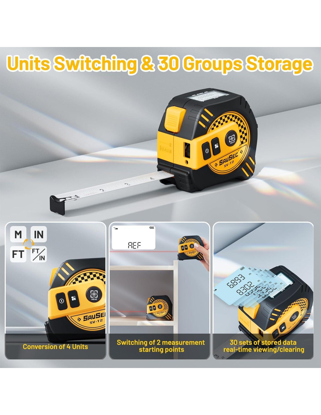 - Cambio de unidad - La medición de la cinta métrica digital se logra en 7 segundos, es posible el cambio de cuatro unidades de m / in / in + ft / ft, carga USB C en 2 horas para 3000 mediciones. Ya seas arquitecto, contratista, carpintero o entusiasta del bricolaje, esta cinta métrica digital te cubre