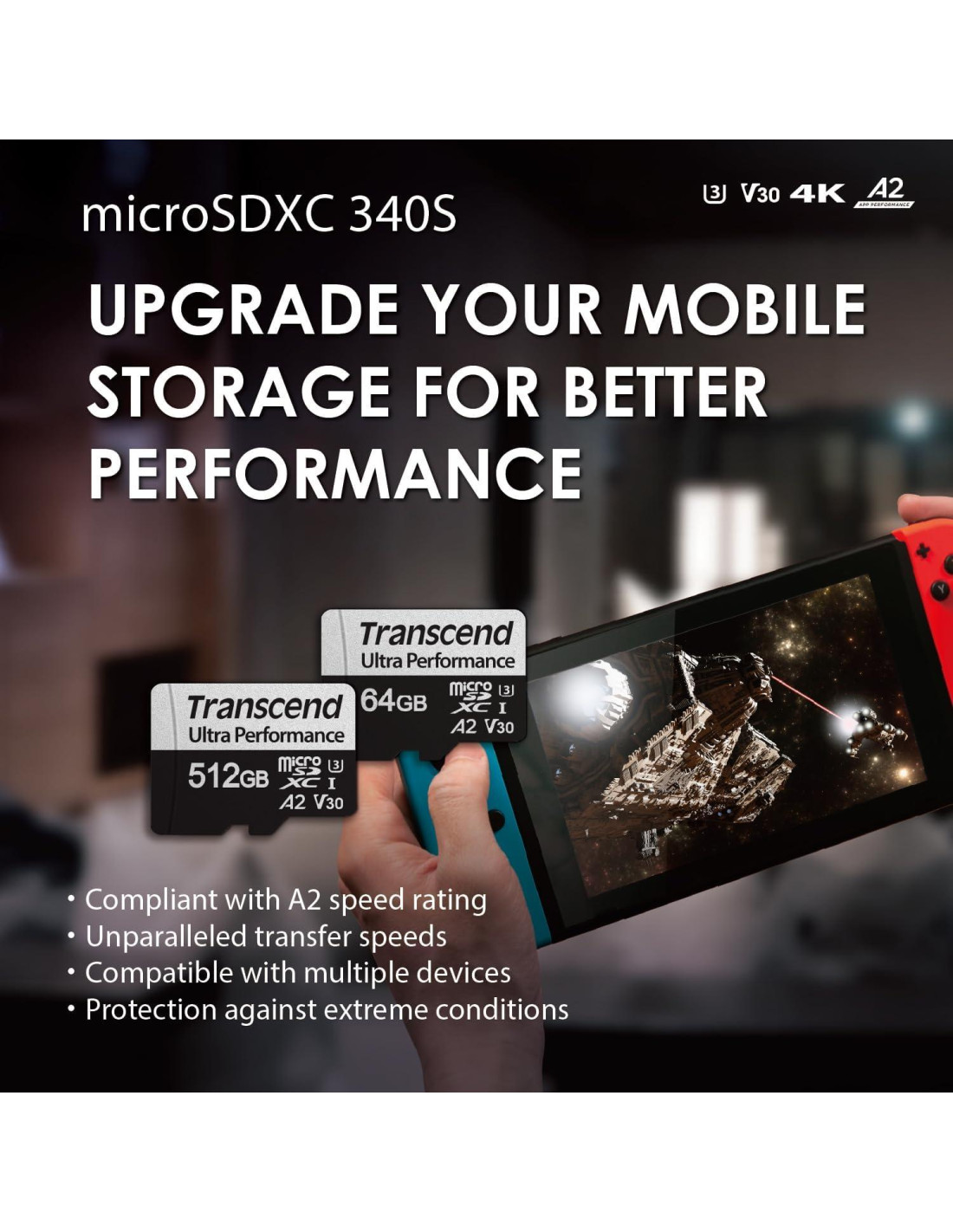 Diseñada para dispositivos móviles y consolas de juegos portátiles, las tarjetas de memoria microSDXC 340S de Ultra Rendimiento de Transcend cumplen con la última clase de velocidad A2 y cuentan con excelentes velocidades de lectura/escritura aleatorias, lo que las hace ideales para recuperar pequeñas piezas de datos de ubicaciones aleatorias y lanzamientos rápidos de aplicaciones.