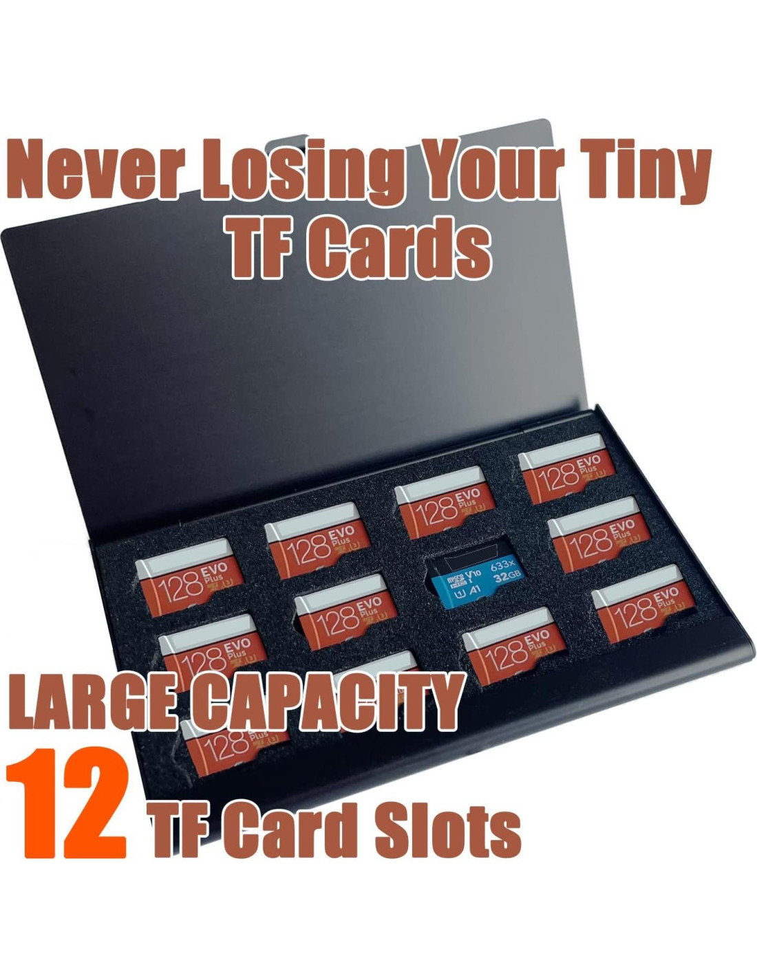 - Capacidad: 12 ranuras para tarjetas Micro SD/TF, adecuada para la protección y almacenamiento de tarjetas digitales de seguridad de cámaras digitales, PDA, reproductores multimedia, teléfonos móviles, computadoras y otros dispositivos portátiles. Nota: esta caja no es adecuada para tarjetas SD estándar o tarjetas CF.