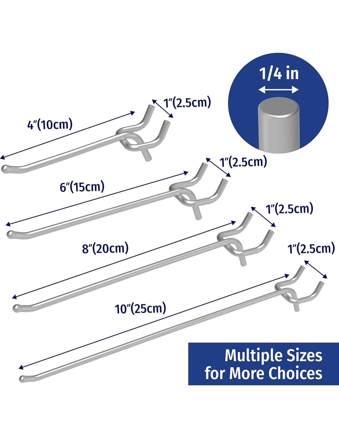 - [CALIDAD PREMIUM] Nuestros ganchos de pegboard están hechos de acero inoxidable de alta calidad que permite años de uso sin doblarse o deformarse. Tiene una construcción de acero endurecido para proporcionar máxima resistencia y un acabado galvanizado resistente a la corrosión para durabilidad.