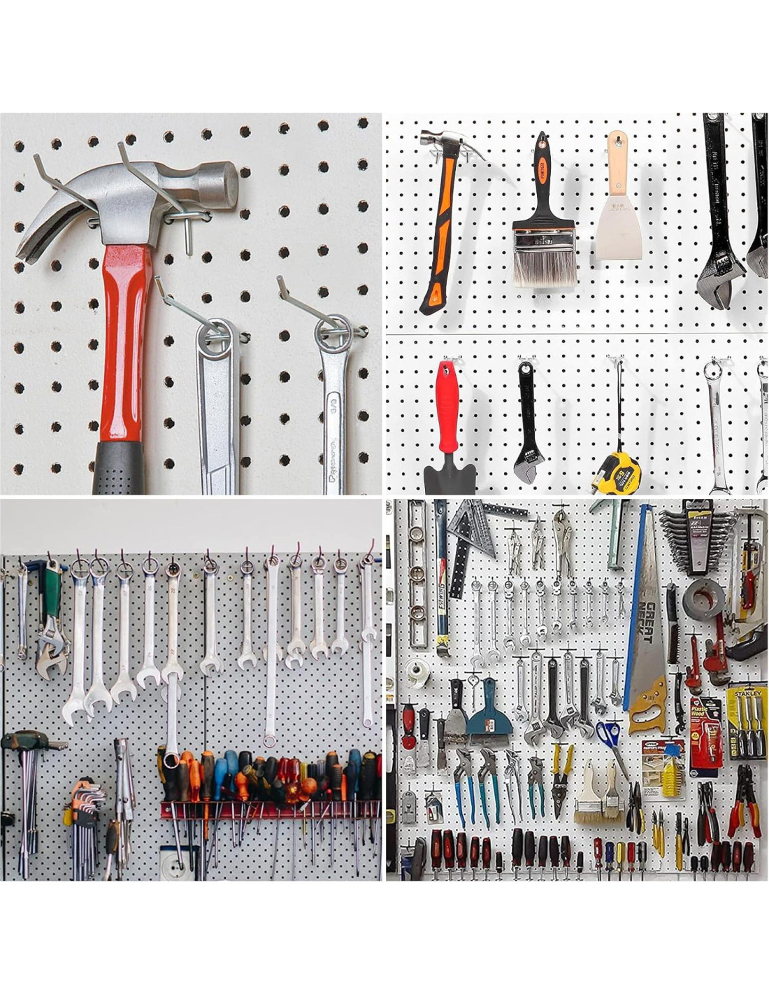 - [Kit de organización sólido para uso amplio] Ideal para reorganizar el diseño en el panel perforado y organizar una amplia gama de suministros de pintura, brochas, cintas métricas, llaveros, suministros de limpieza del hogar, herramientas, cuerdas elásticas, cables de extensión, llaves, alicates, joyas, accesorios, etc.