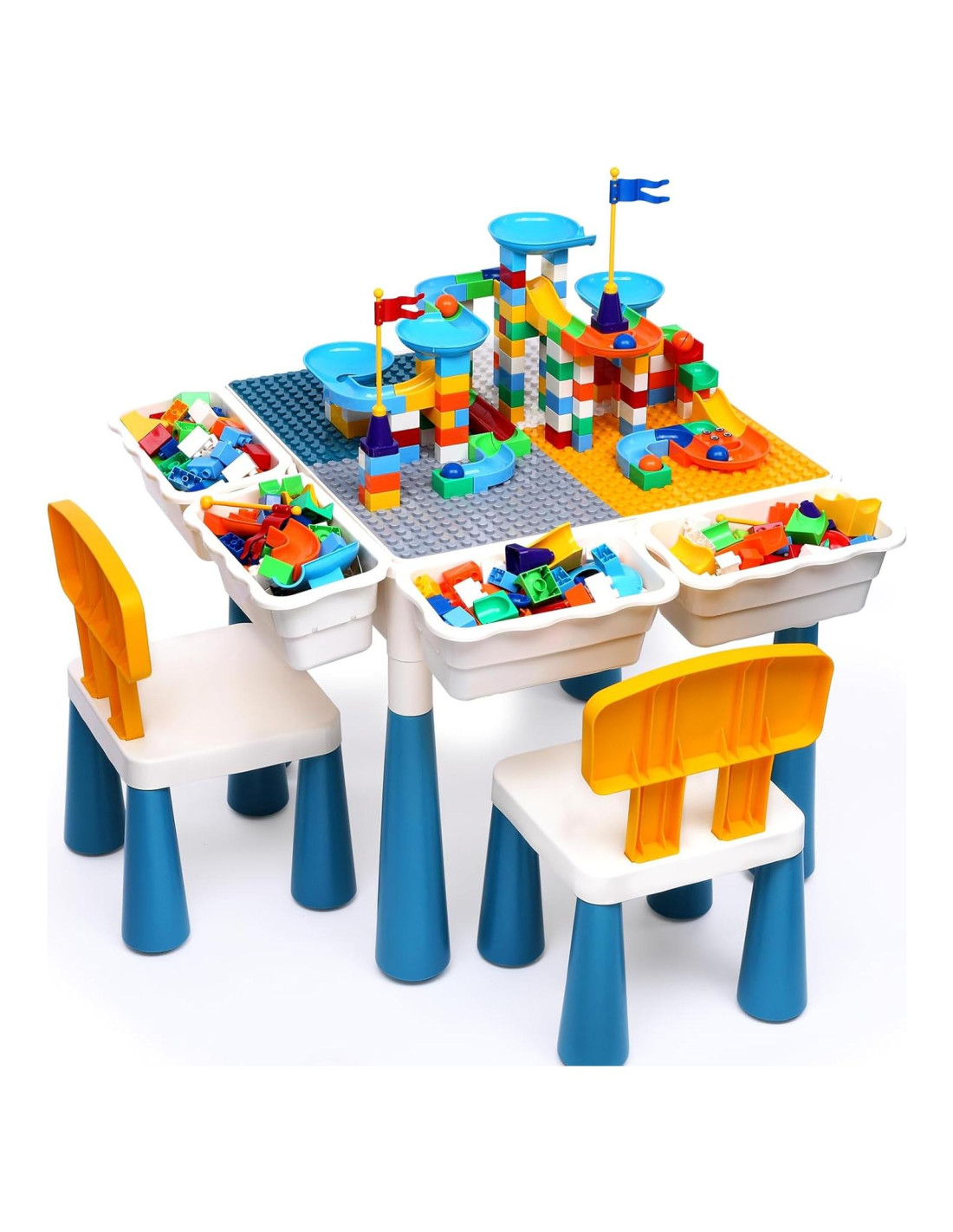 - Juguete Educativo para Niños: El set de mesa de actividades para niños contiene 1 mesa de bloques de construcción, 2 sillas, 152 piezas de bloques de construcción de canicas que son de rica variedad y color brillante, estimulan el interés de los niños en jugar. El niño podría construir varios objetos imaginarios con amigos, como casas, coches, parques infantiles, etc. Mejora la imaginación espacial de los niños, la comunicación, las habilidades prácticas y promueve el desarrollo cerebral.
