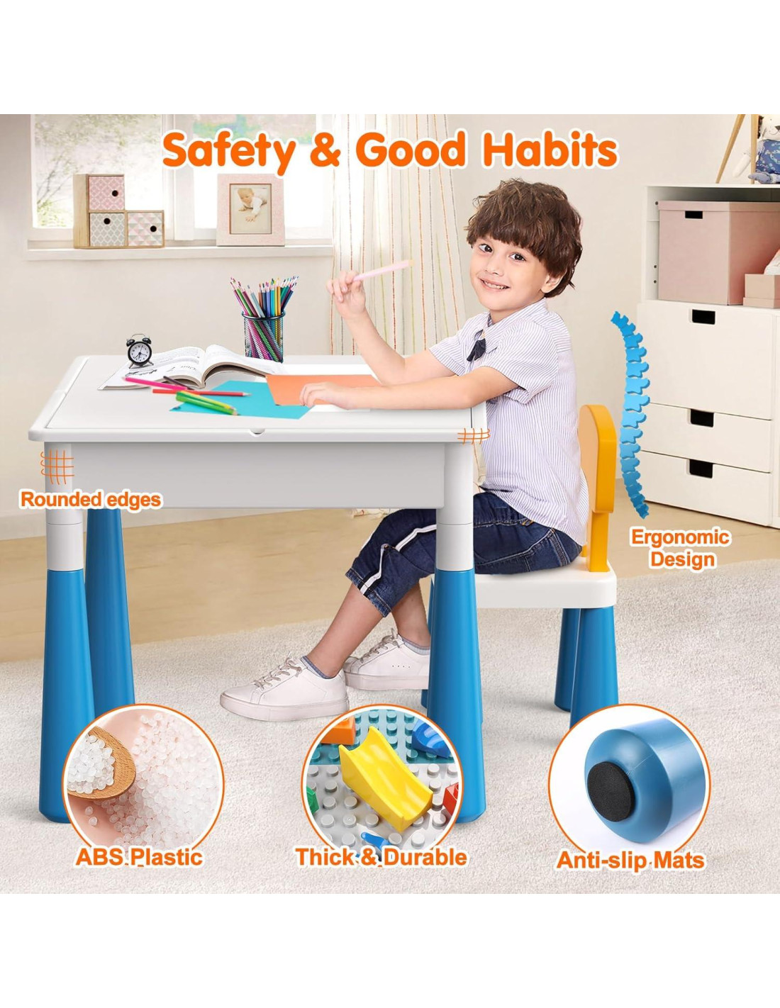 - Diseñado para el Crecimiento de los Niños: Juguete de mesa de bloques de construcción para niños de 3 a 10 años. Estamos equipados con tubos de aumento de altura de 2.75 pulgadas (6,99 cm), que se pueden ajustar según la altura del niño. El diseño ergonómico de la silla puede cultivar la postura de sentado erguido para proteger la columna vertebral del niño. La mesa de actividades para niños puede acompañar al niño a crecer, dándoles una infancia feliz.