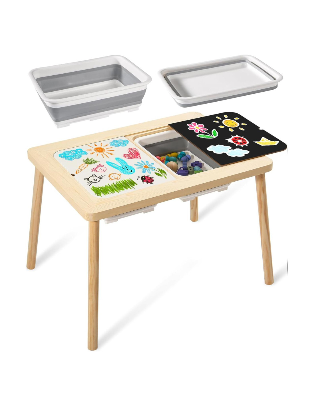 - [Mesa Sensorial 5 en 1] Nuestra mesa contiene 2 contenedores de almacenamiento plegables y 2 tapas de doble cara para dibujar, no es solo una mesa sensorial, sus hijos pueden comer en la mesa, comer bocadillos, leer, dibujar, jugar con bloques, hacer manualidades, completar tareas, jugar juegos de mesa. Esta mesa es adecuada para sala de juegos, guardería y preescolar.