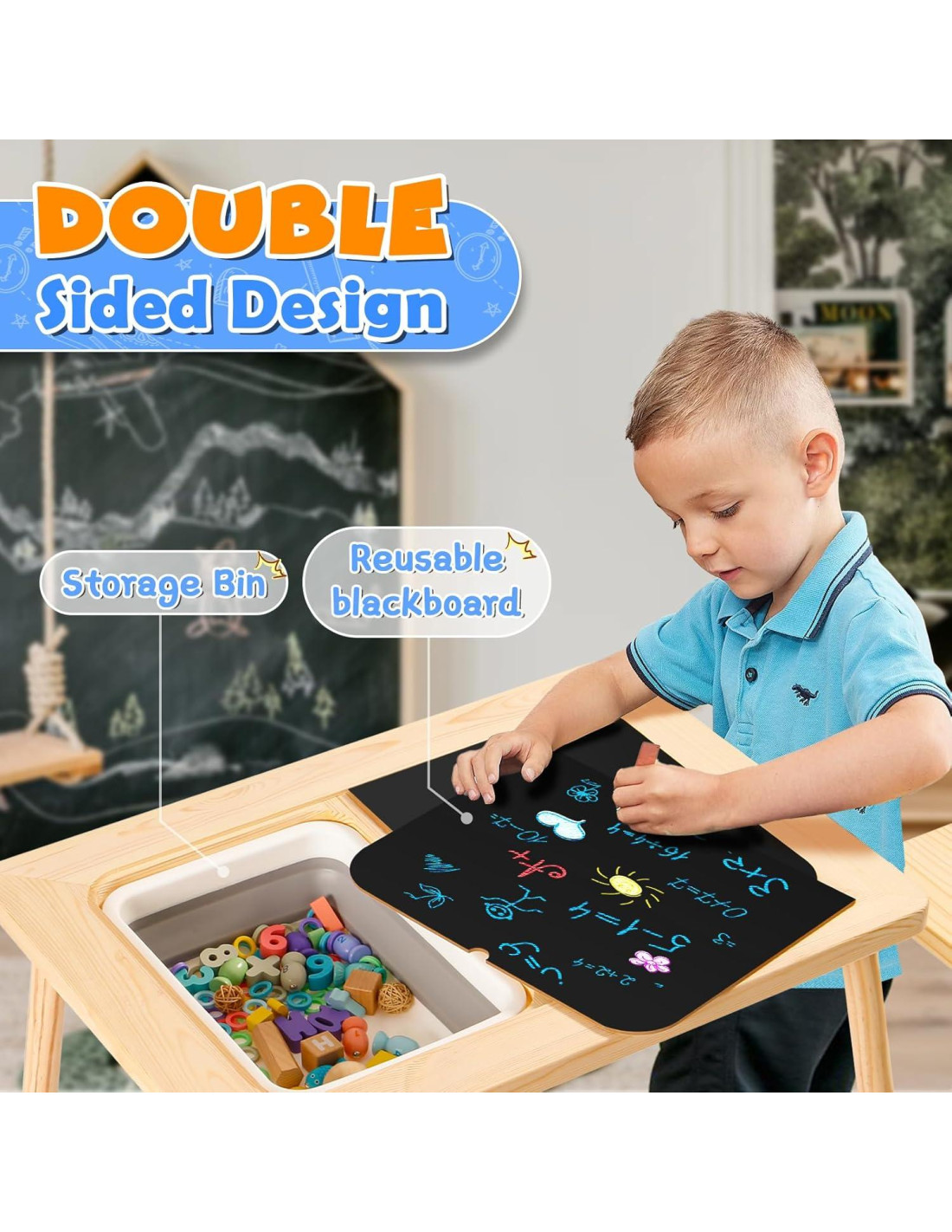 - [Fácil de Limpiar y Montar] Los niños pueden escribir y dibujar en la pizarra negra o la pizarra blanca con tizas, es fácil limpiar las marcas de graffiti con solo un paño húmedo. Su mesa se mantendrá limpia y ordenada, y esta mesa tiene una estructura simple y se puede montar en 5 minutos.
