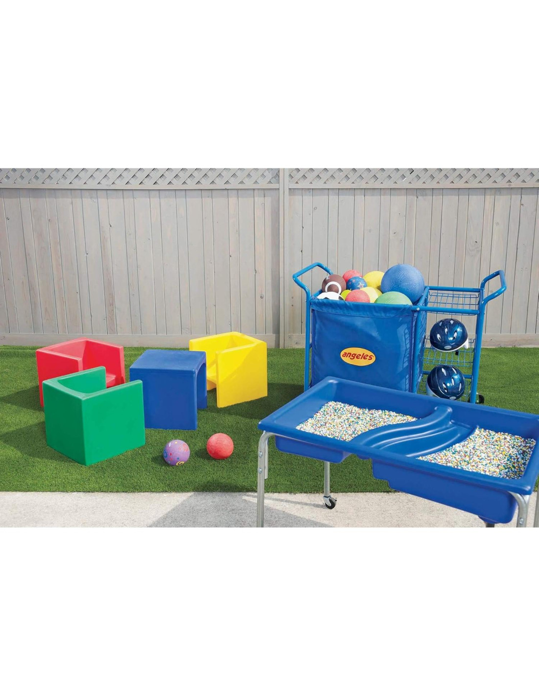 Llena esta versátil Mesa Sensorial Grande Neptune de Children's Factory con agua, arena o Kidfetti para proporcionar a los niños una experiencia sensorial relajante y que alivia el estrés. Intenta agregar algunos juguetes de excavación para mantener las cosas interesantes. Es la caja sensorial perfecta para cualquier niño pequeño o niño, incluidos aquellos con necesidades especiales. Esta mesa cuenta con dos recipientes separados por una cascada para que los niños puedan ver fluir el agua. La bañera está hecha de plástico resistente y a prueba de clima y tiene un marco de acero galvanizado resistente a la corrosión, lo que la hace ideal para uso en interiores o exteriores. Esta mesa de agua móvil cuenta con 4 ruedas, 2 de las cuales se bloquean, para facilitar el movimiento. Para esta mesa recomendamos 9 kg de Kidfetti o 22.7 kg de arena (Kidfetti se vende por separado).