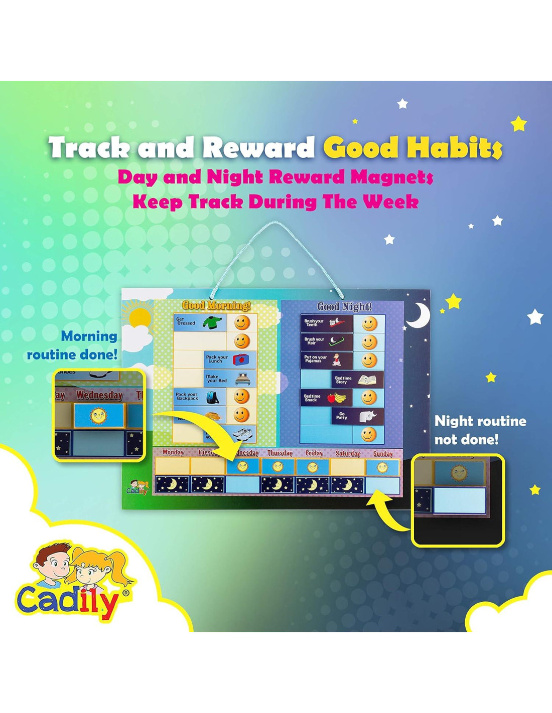 - Fomenta buenos hábitos - Nuestra tabla de responsabilidad para niños de 4 a 8 años es una gran herramienta para mantenerlos en la tarea y responsables. La tabla de recompensas magnética de Día y Noche promueve la independencia y buenos hábitos. ¡Recompensa el buen comportamiento!